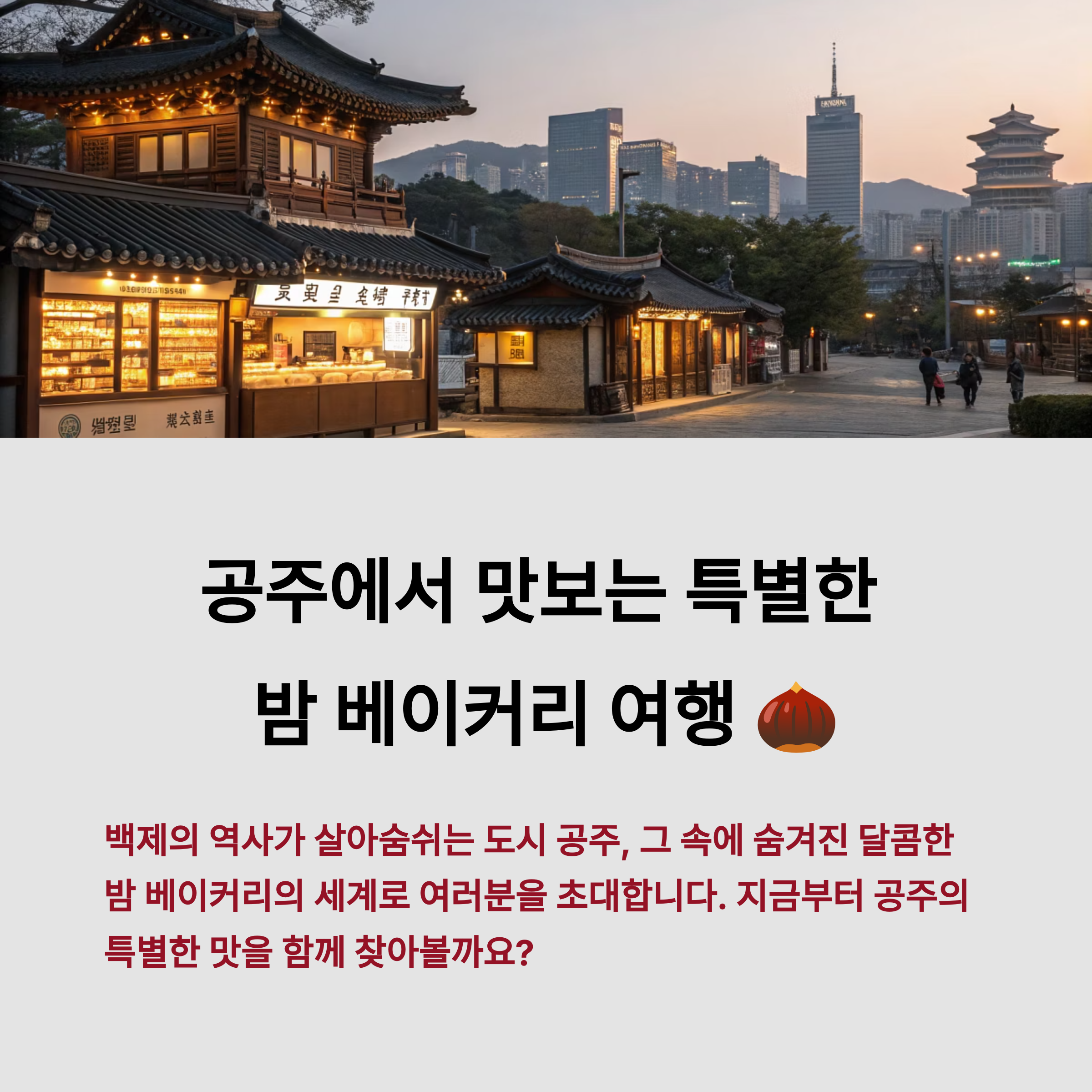 공주는 역사가 깊고 자연이 아름다운 도시로, 특히 밤이 대표적인 특산물로 손에 꼽힙니다.