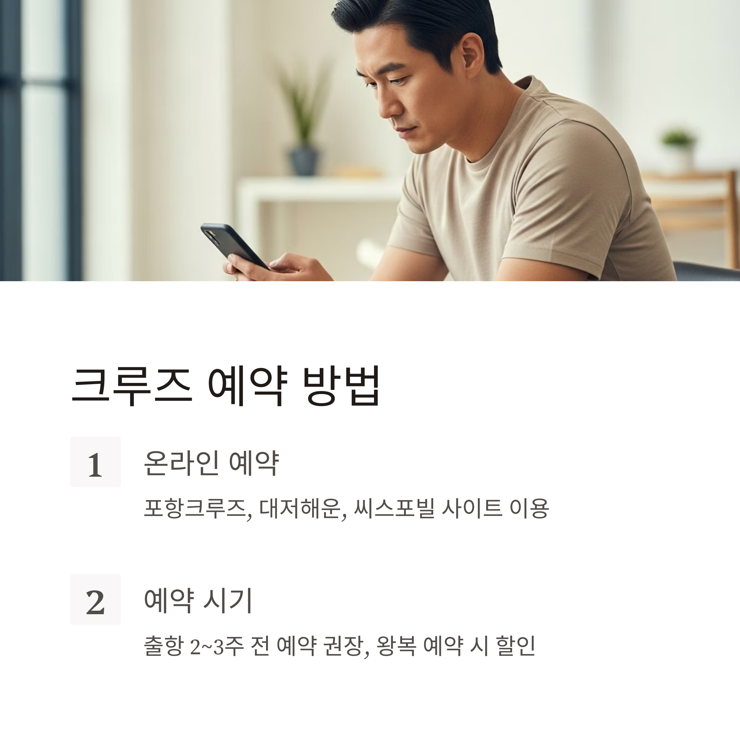 크루즈별로 전용 예약 사이트가 마련되어 있습니다.