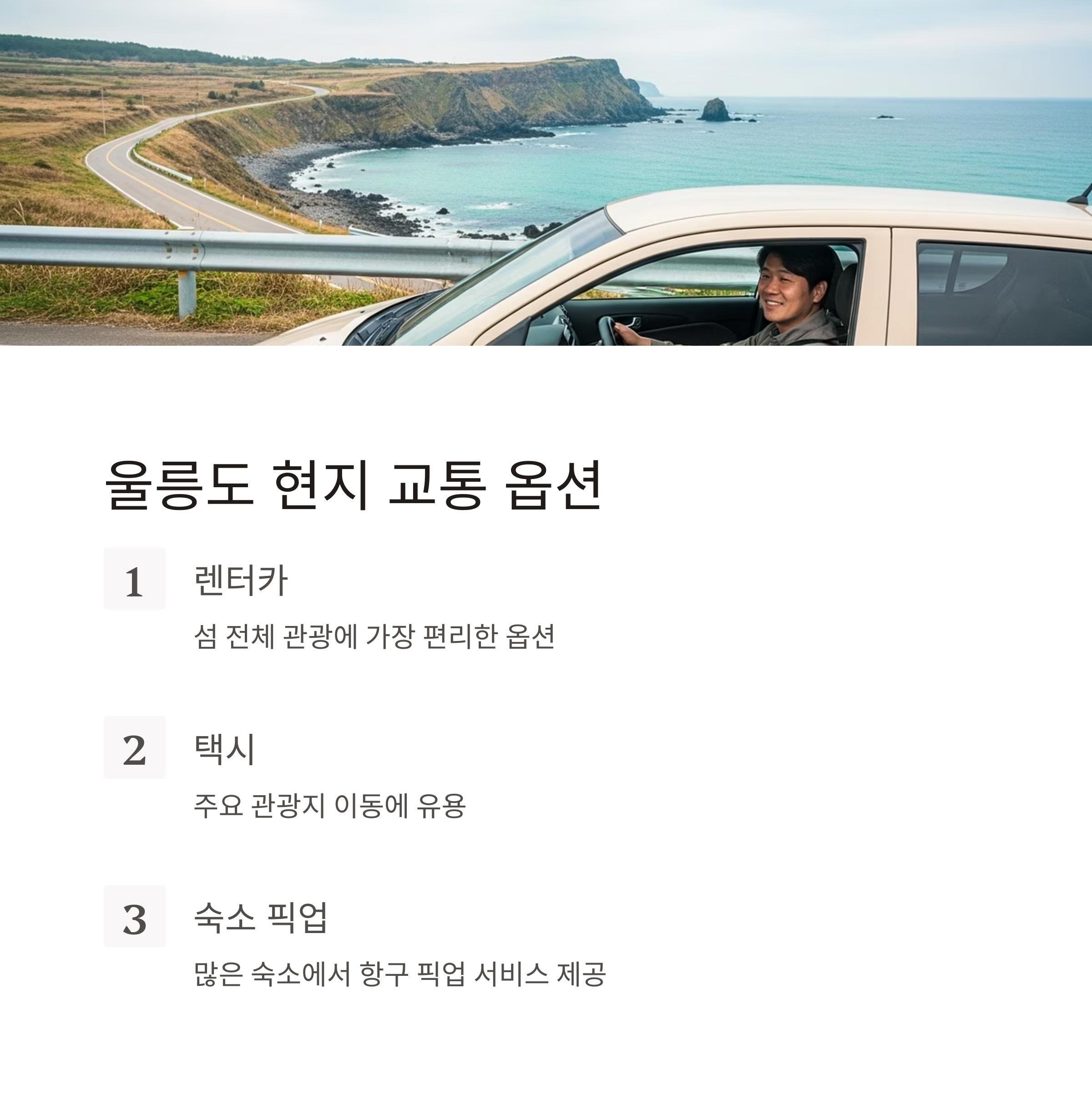 울릉도 내에서는 대중교통보다는 렌터카 이용이 편리하며