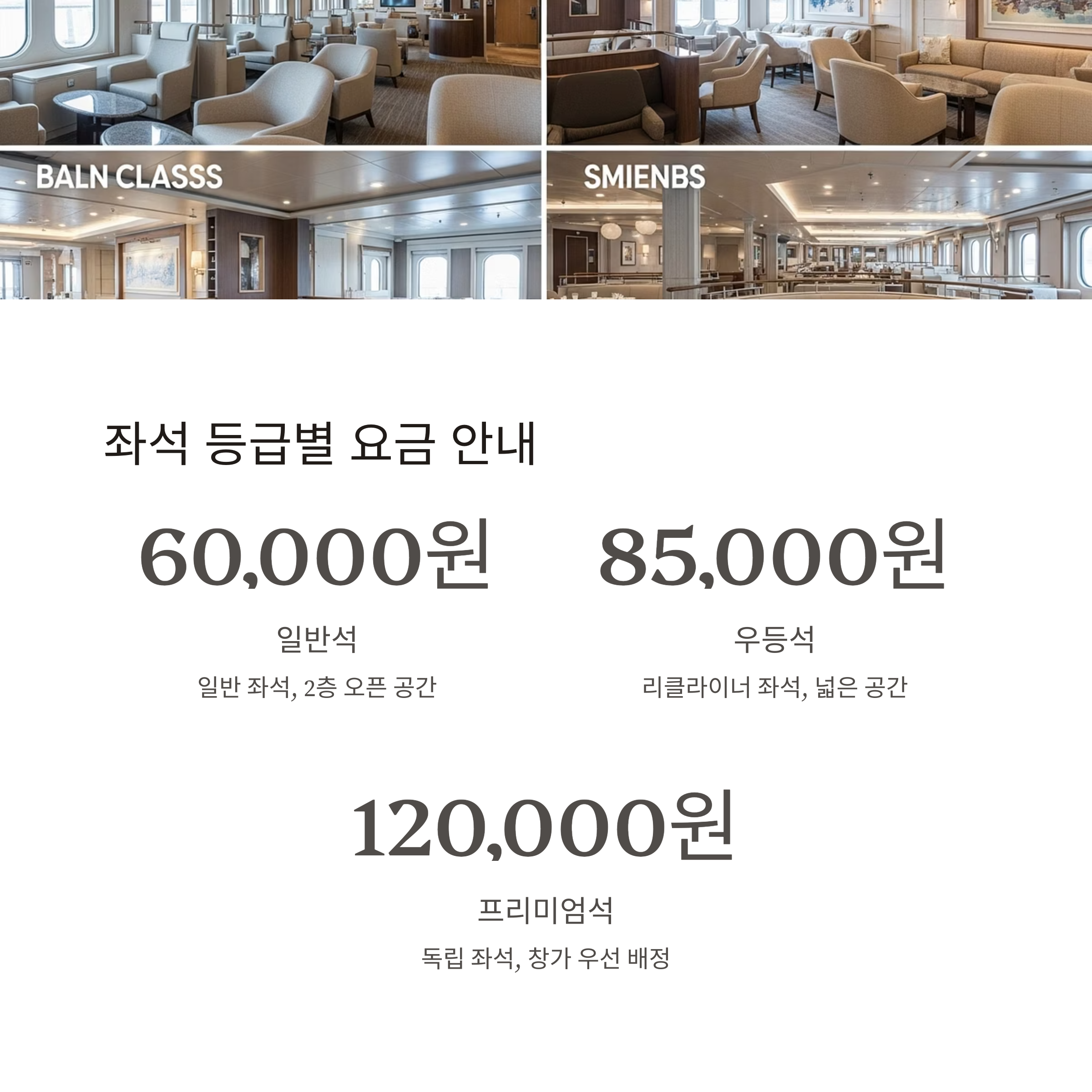 | 프리미엄석 | 약 120,000원 | 독립 좌석, 창가 우선 배정 |