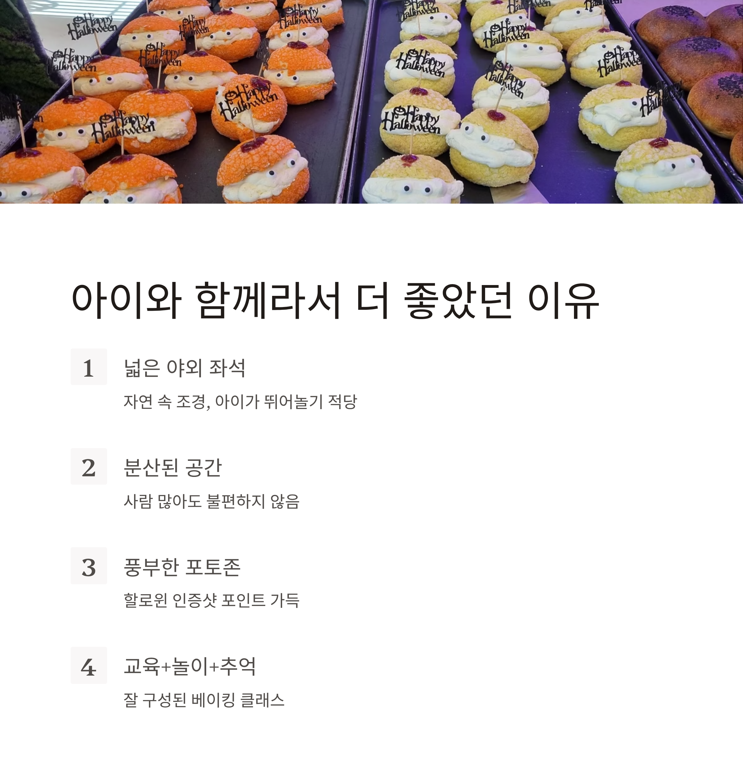 - 할로윈 포토존이 많아 인증샷 포인트가 풍부하고, 아이도 즐거워했어요.