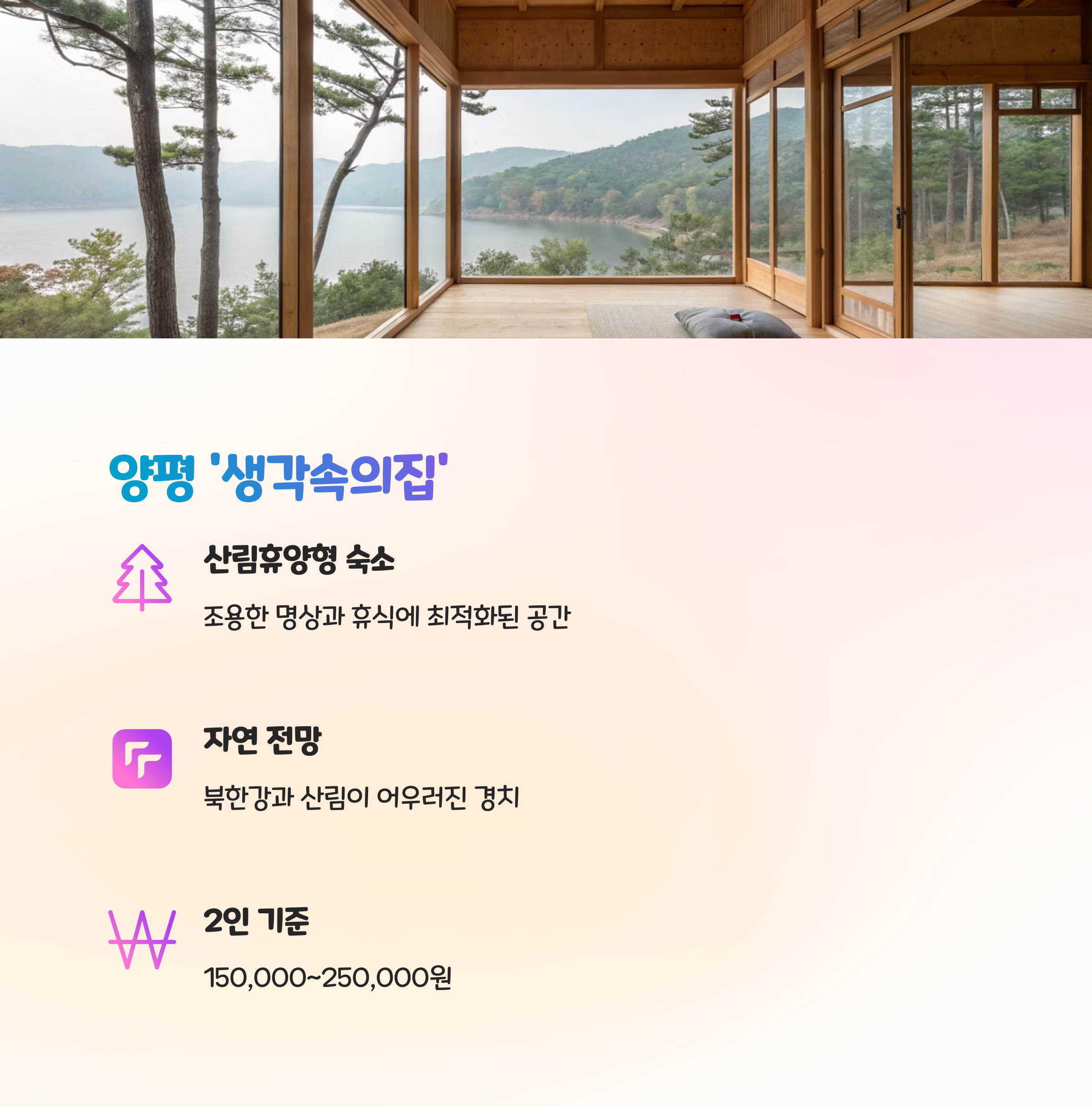 | 생각속의집 (양평) | 2인 기준 150,000원부터 |