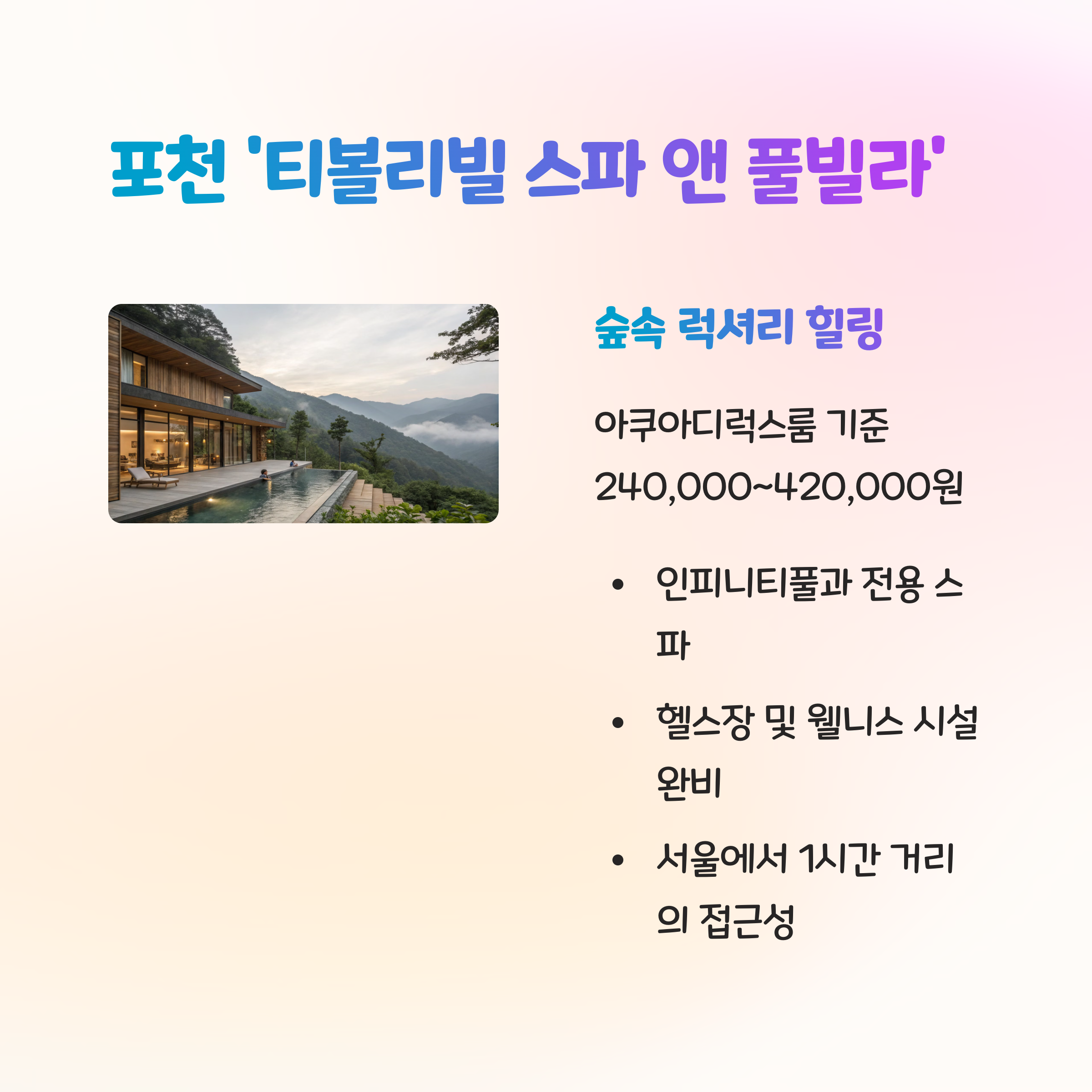 | 티볼리빌 스파 앤 풀빌라 (포천) | 240,000원부터 |