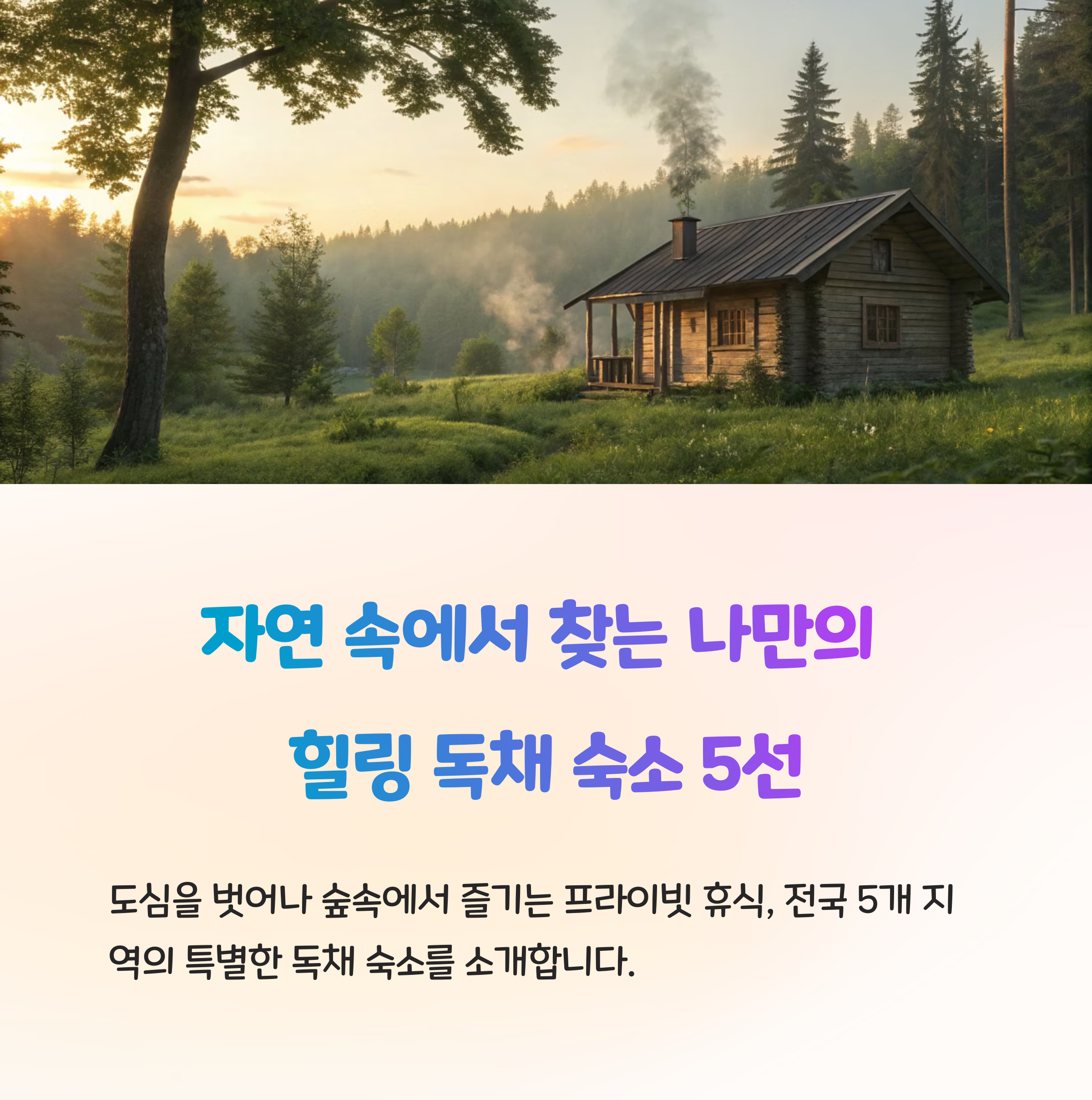 이번에는 독채 숲속 숙소를 찾는 분들을 위해 준비한 콘텐츠를 소개합니다.