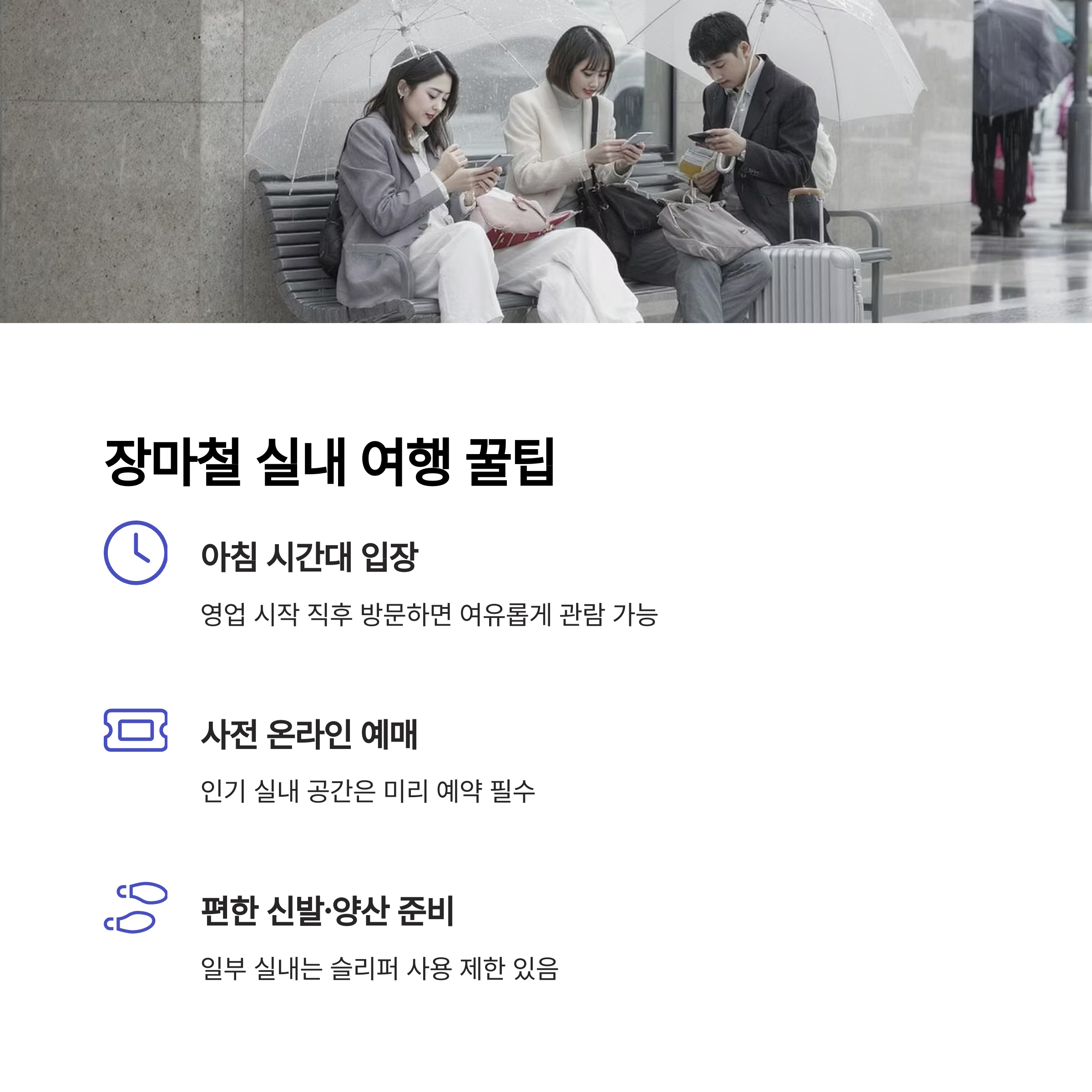 • 편한 신발·양산 준비는 기본, 다만 일부 실내는 슬리퍼 사용 제한 있으니 참고하세요