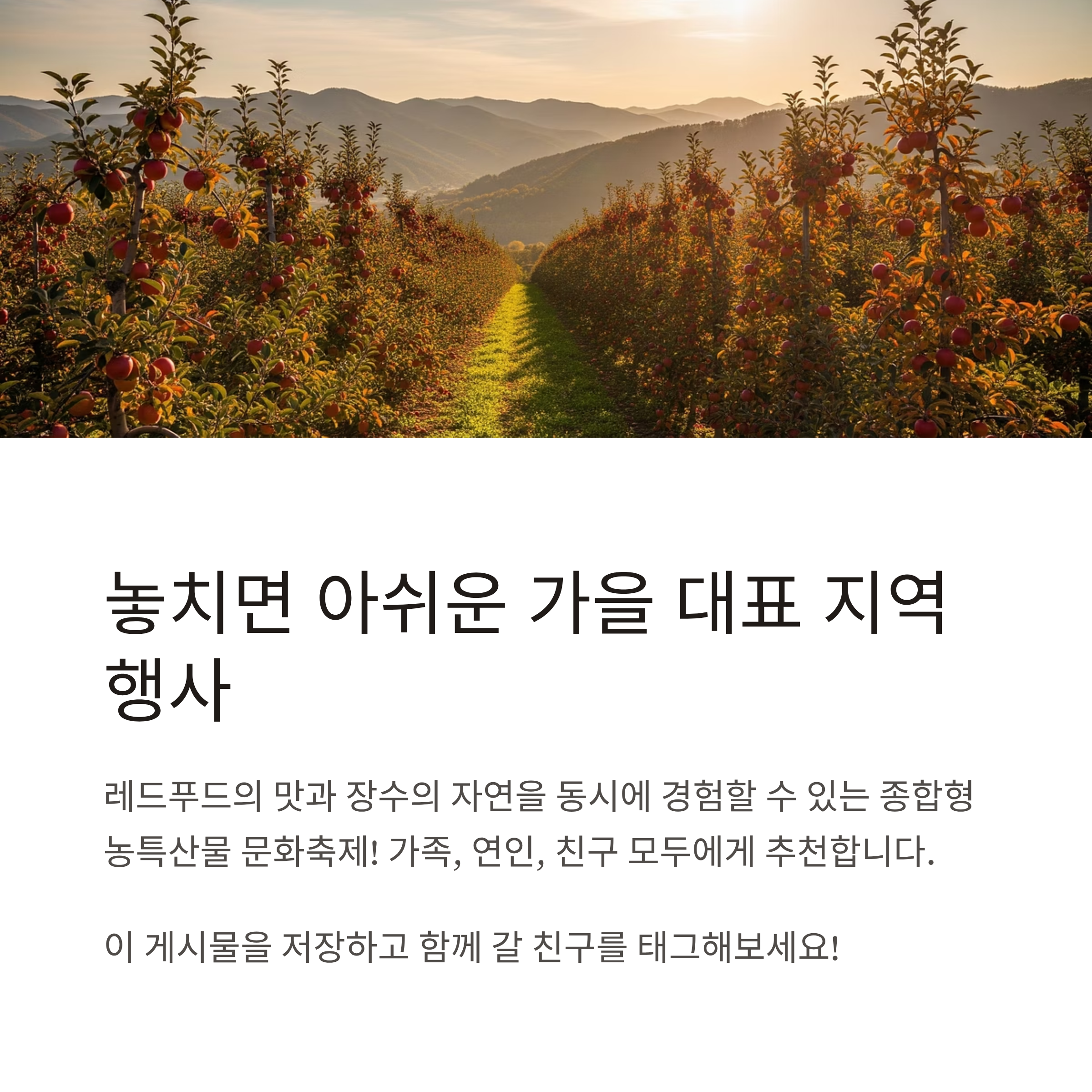 | 테마 및 콘텐츠 | 레드푸드 중심 체험형 축제 (한우, 사과, 오미자 등) |