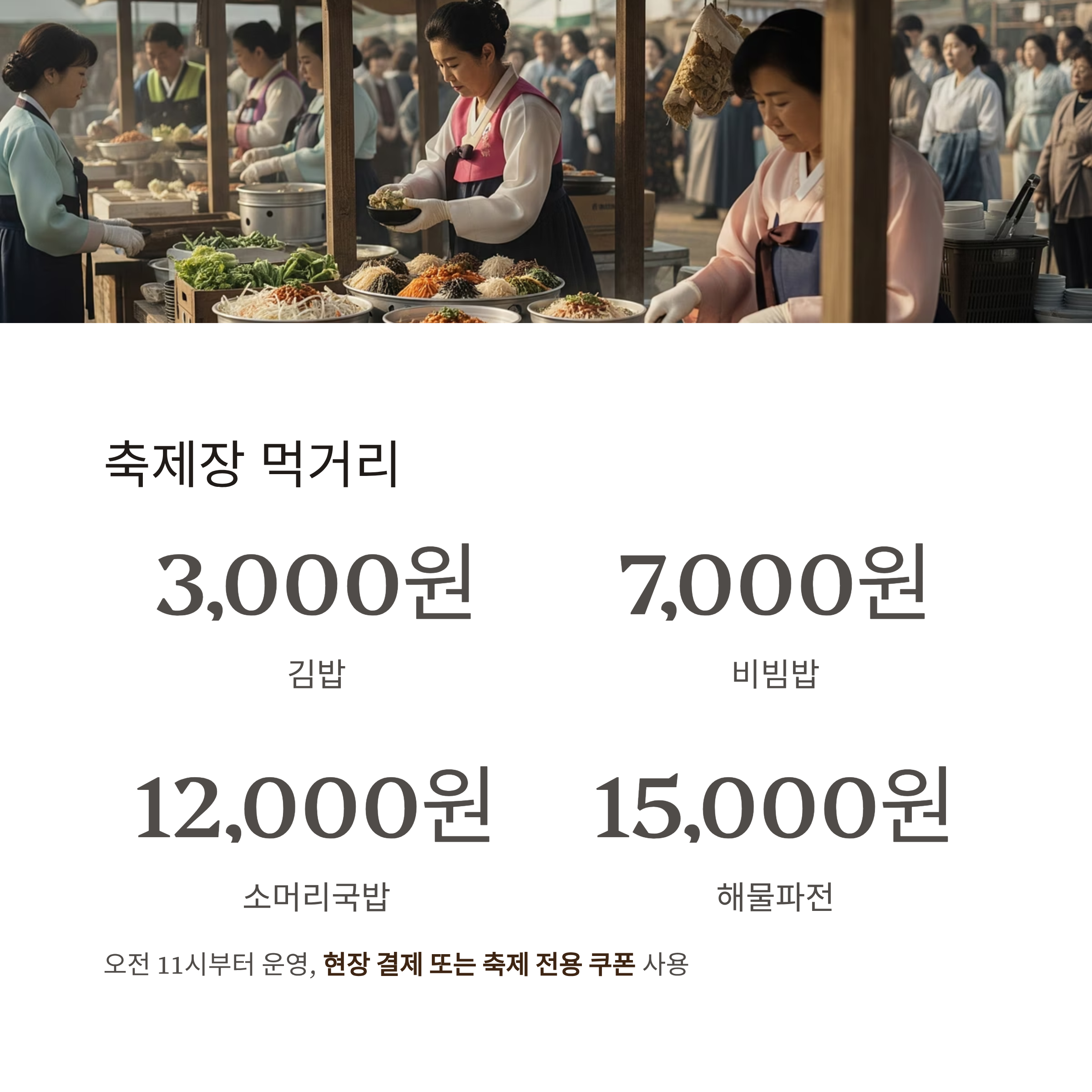 현장 결제 또는 축제 전용 쿠폰 시스템이 도입될 가능성도 있습니다.