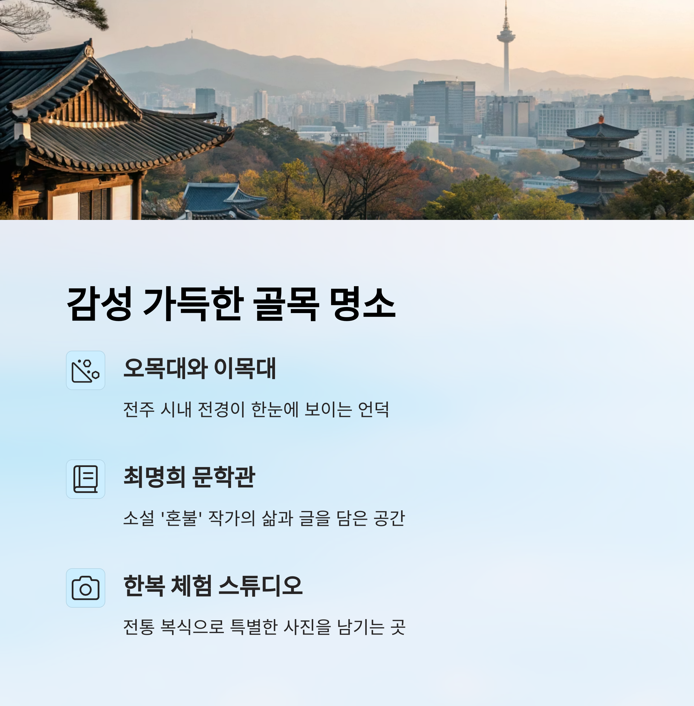 🌿 한옥마을의 감성 골목 명소