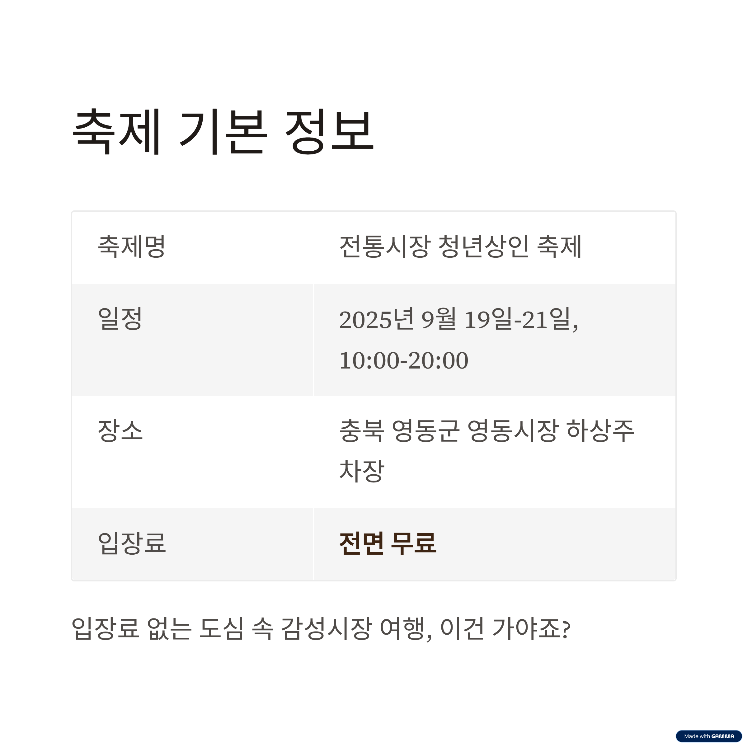 2025년 9월 19일부터 21일까지 단 3일, 충북 영동군에서 열리는 이 축제는