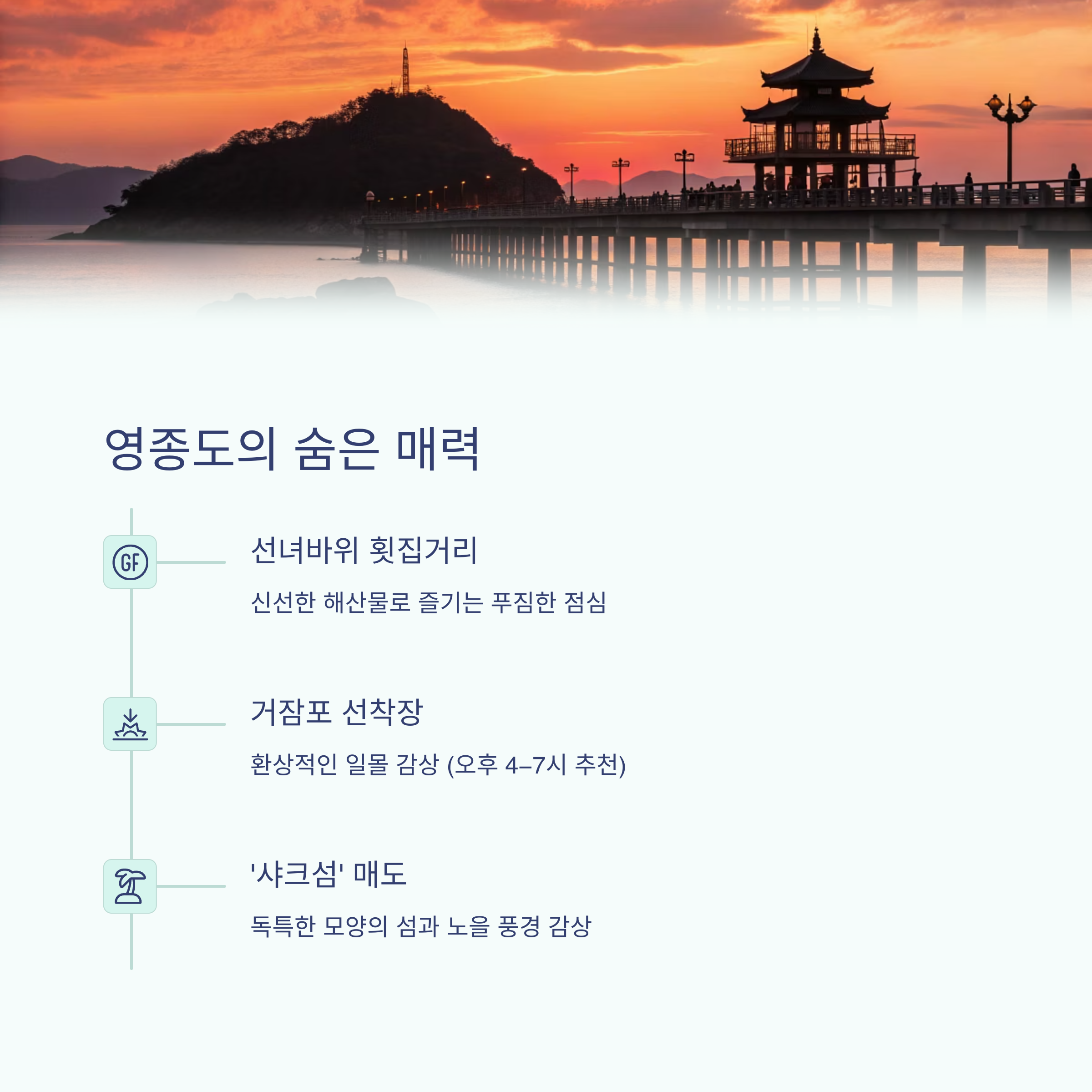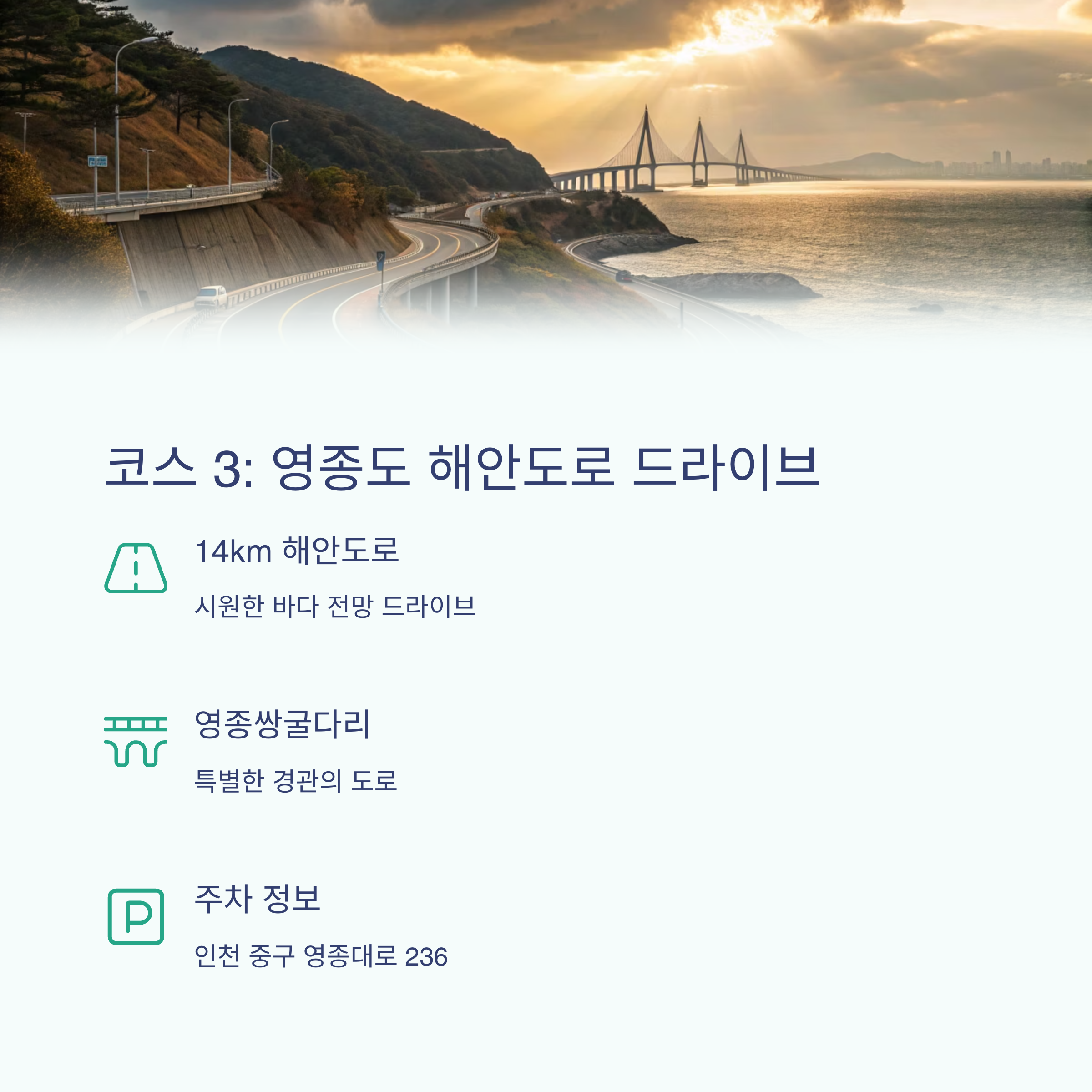 | 영종도 | 약 3~4시간 | 해안 드라이브 | 신선한 회 |