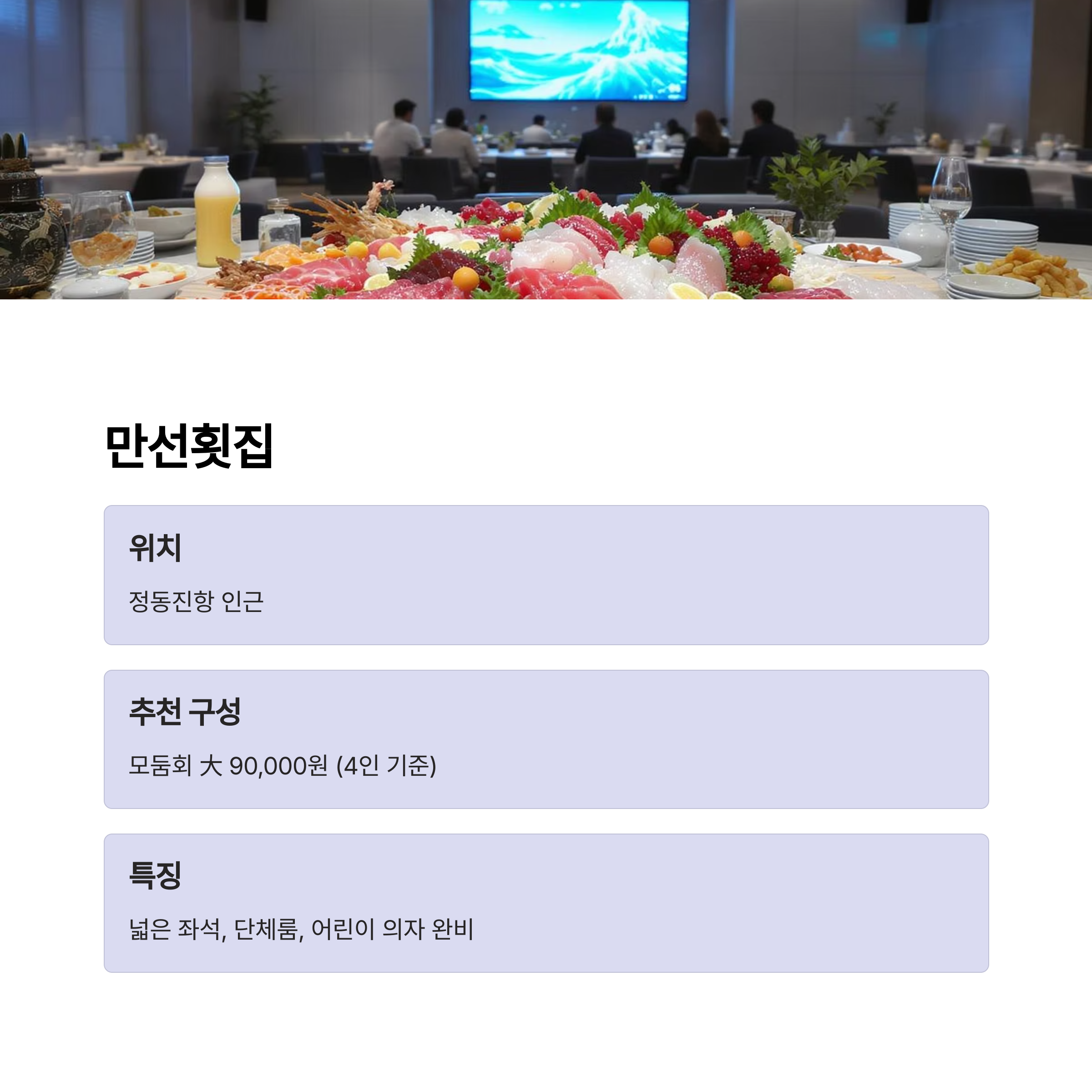 2025년 기준, 정동진 현지인·여행자 모두 인정한 추천 식당 7곳을 소개합니다.