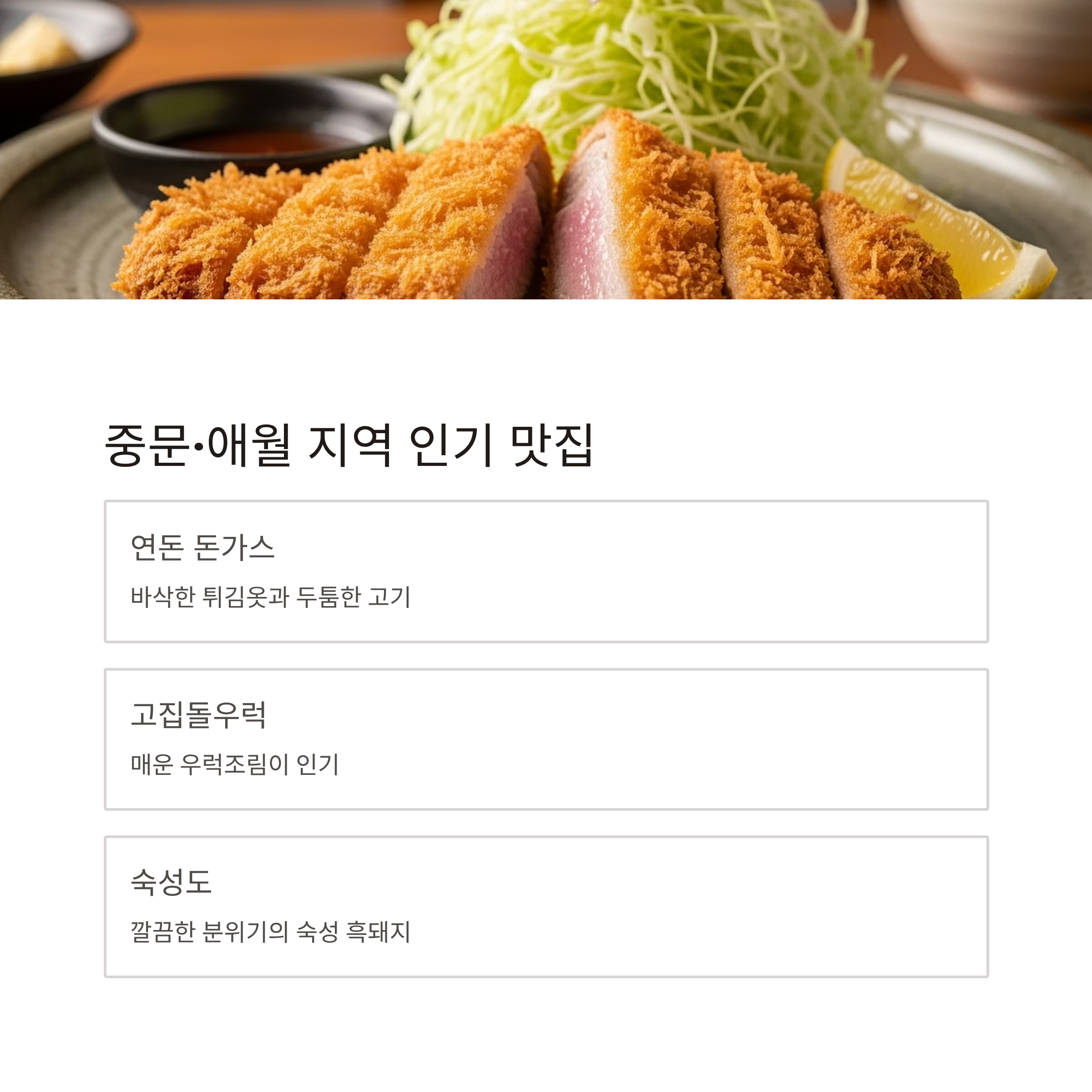 | 중문·애월 | 연돈, 고집돌우럭, 숙성도 |