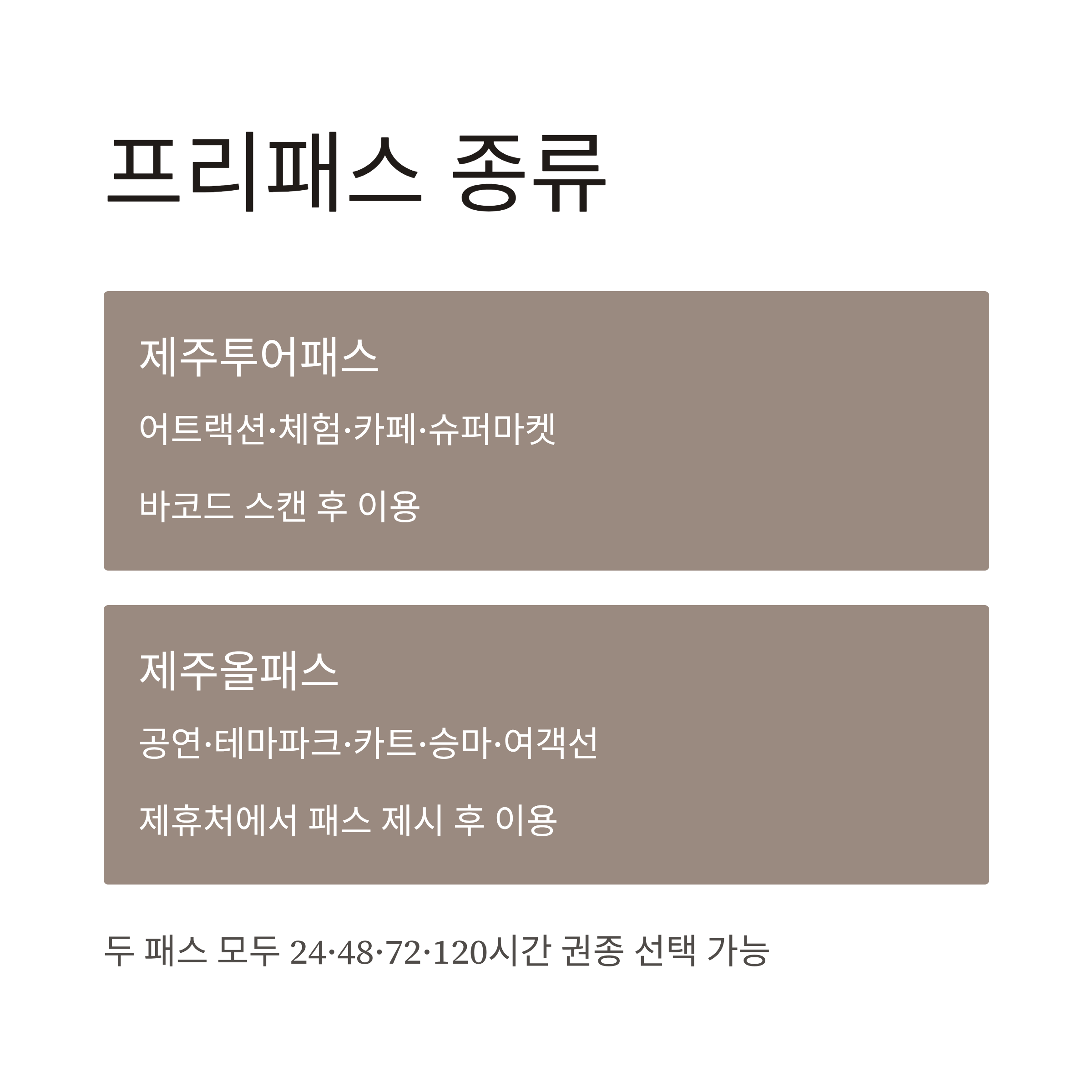 제주프리패스 종류와 특징