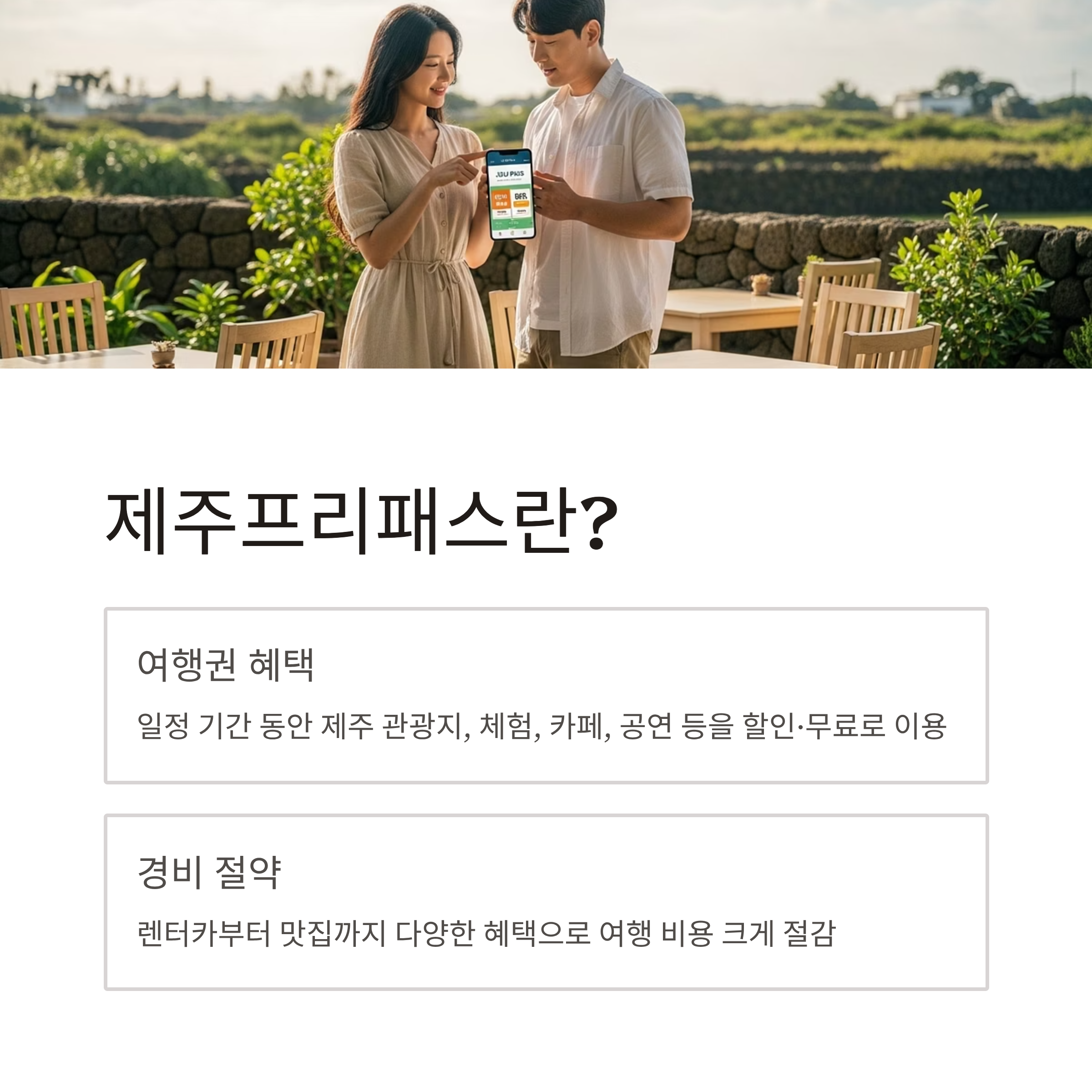 제주프리패스는 일정 기간 동안 제주 관광지와 체험, 카페, 공연 등을 할인·무료로 즐길 수 있는 여행권입니다. 렌터카 할인부터 관광지·맛집까지 혜택이 다양해, 여행 코스를 잘 짜면 경비를 크게 절약할 수 있습니다.