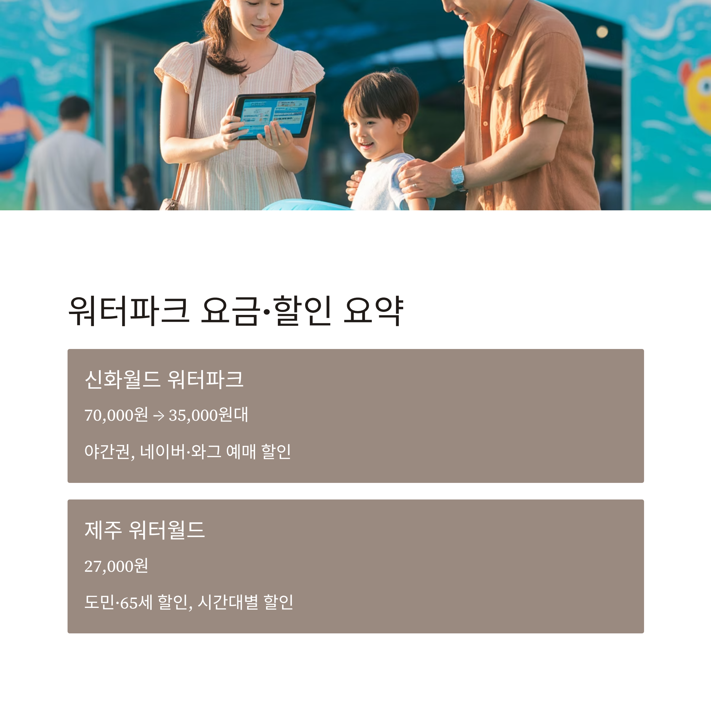 성수기에도 알뜰하게! 워터파크별 가격, 할인 팁, 추천 코스까지 한눈에