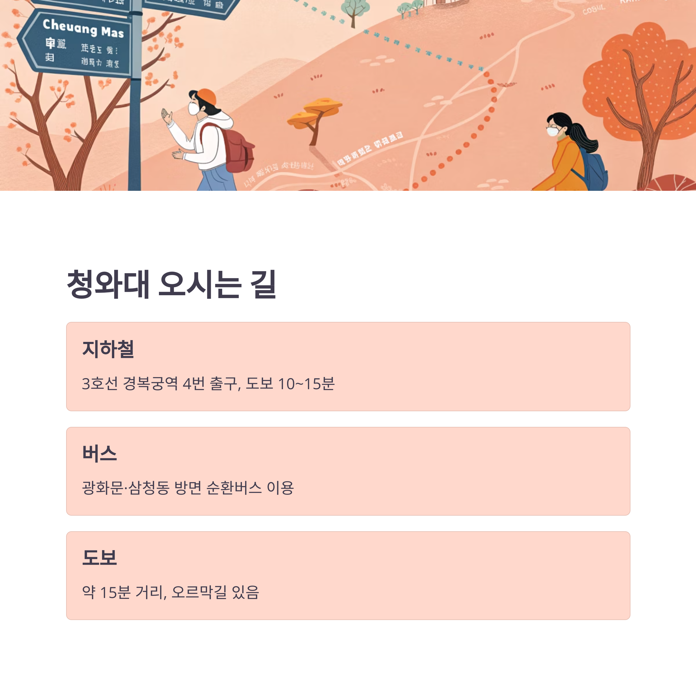 또는 광화문·안국에서 순환버스를 이용해도 편리하게 접근할 수 있습니다.