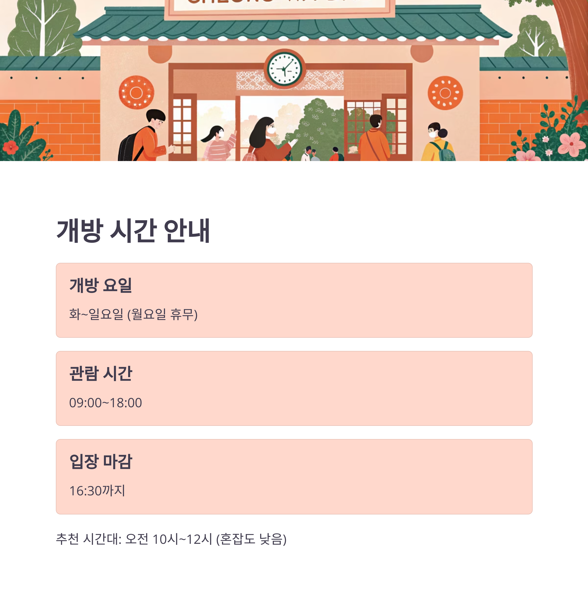 | 개방 요일 | 화~일요일 (월요일 휴무) |