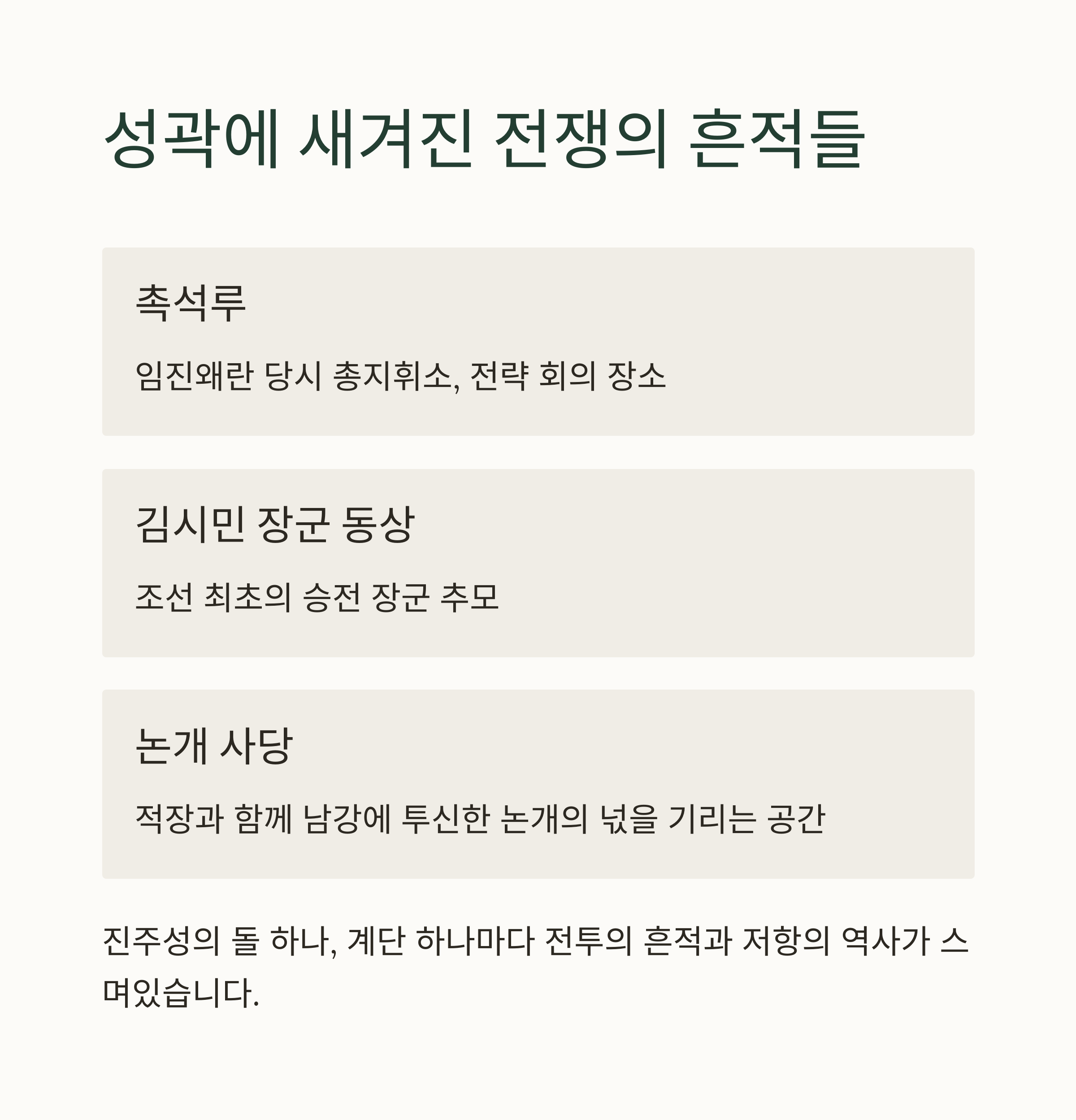 결론: 진주성은 ‘승리의 성’이자 ‘기억의 성’이다