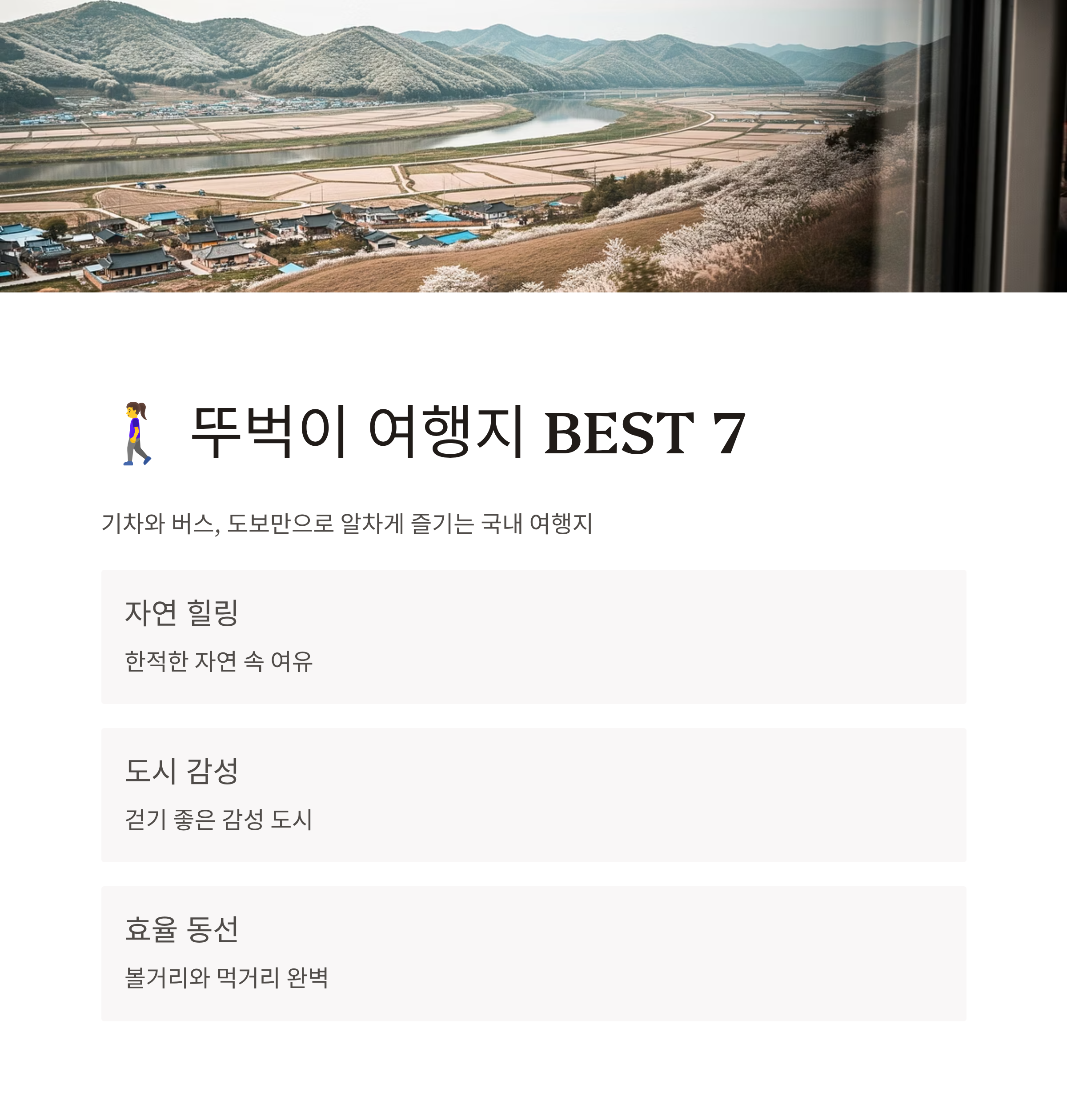 🚶♀️차 없이 떠나는 1박 2일 국내 뚜벅이 여행지 추천 BEST 7