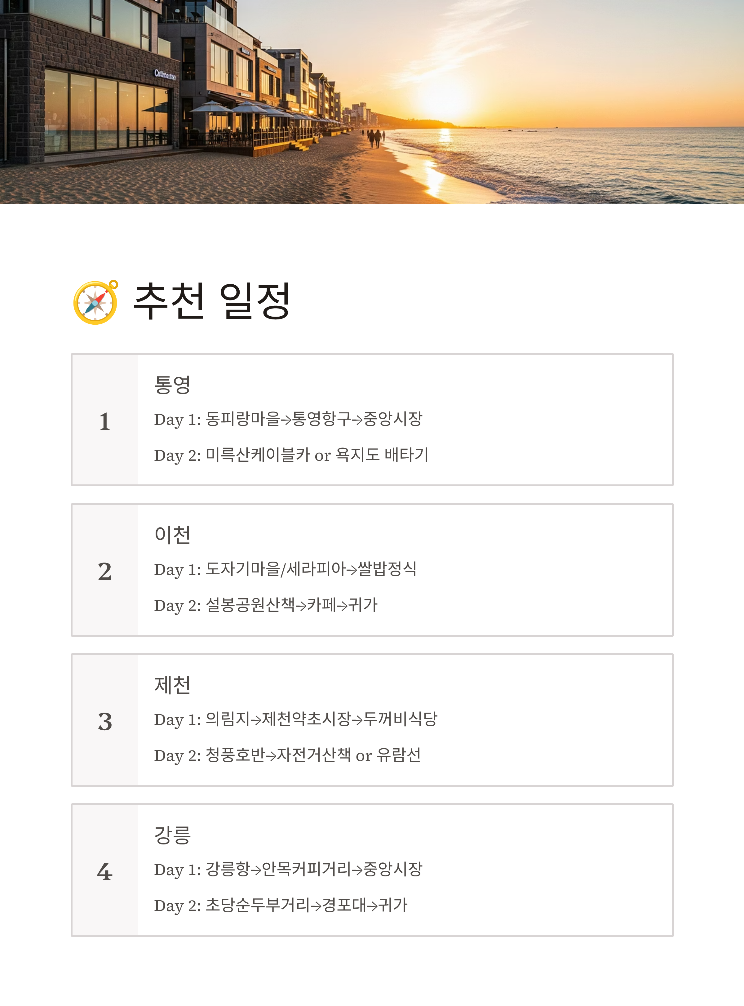 🧭 각 지역별 간단 추천 일정
