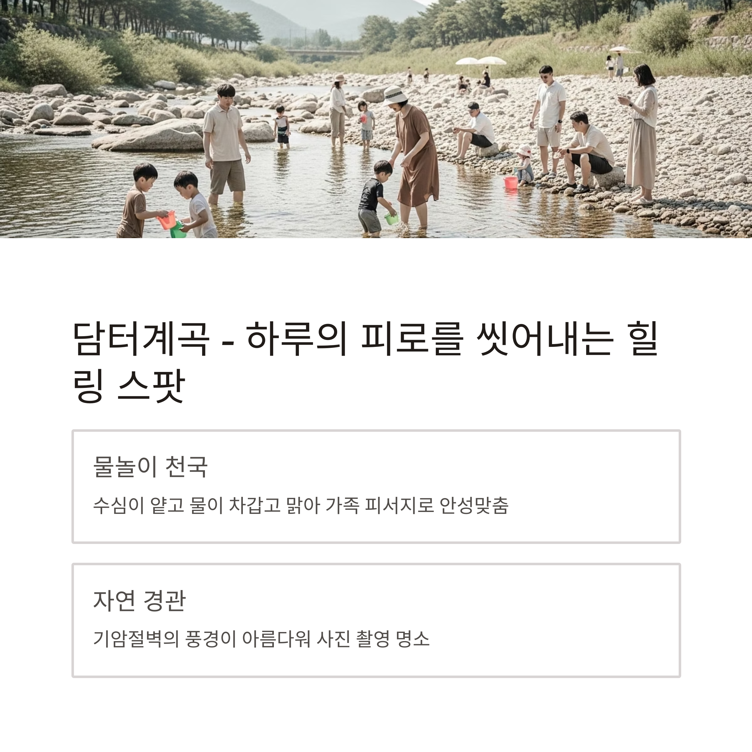 담터계곡 – 하루의 피로를 씻어내는 힐링 스팟