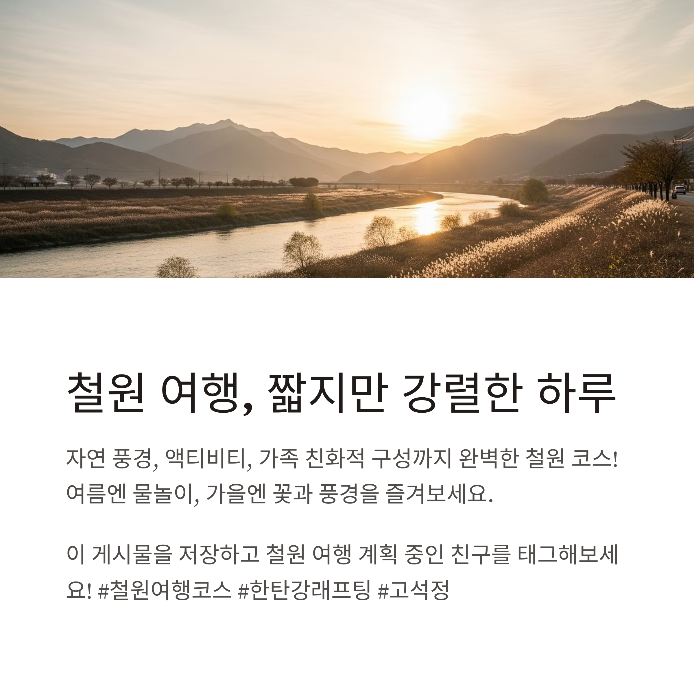 계절에 따라 새로운 감성으로 철원을 즐길 수 있습니다.