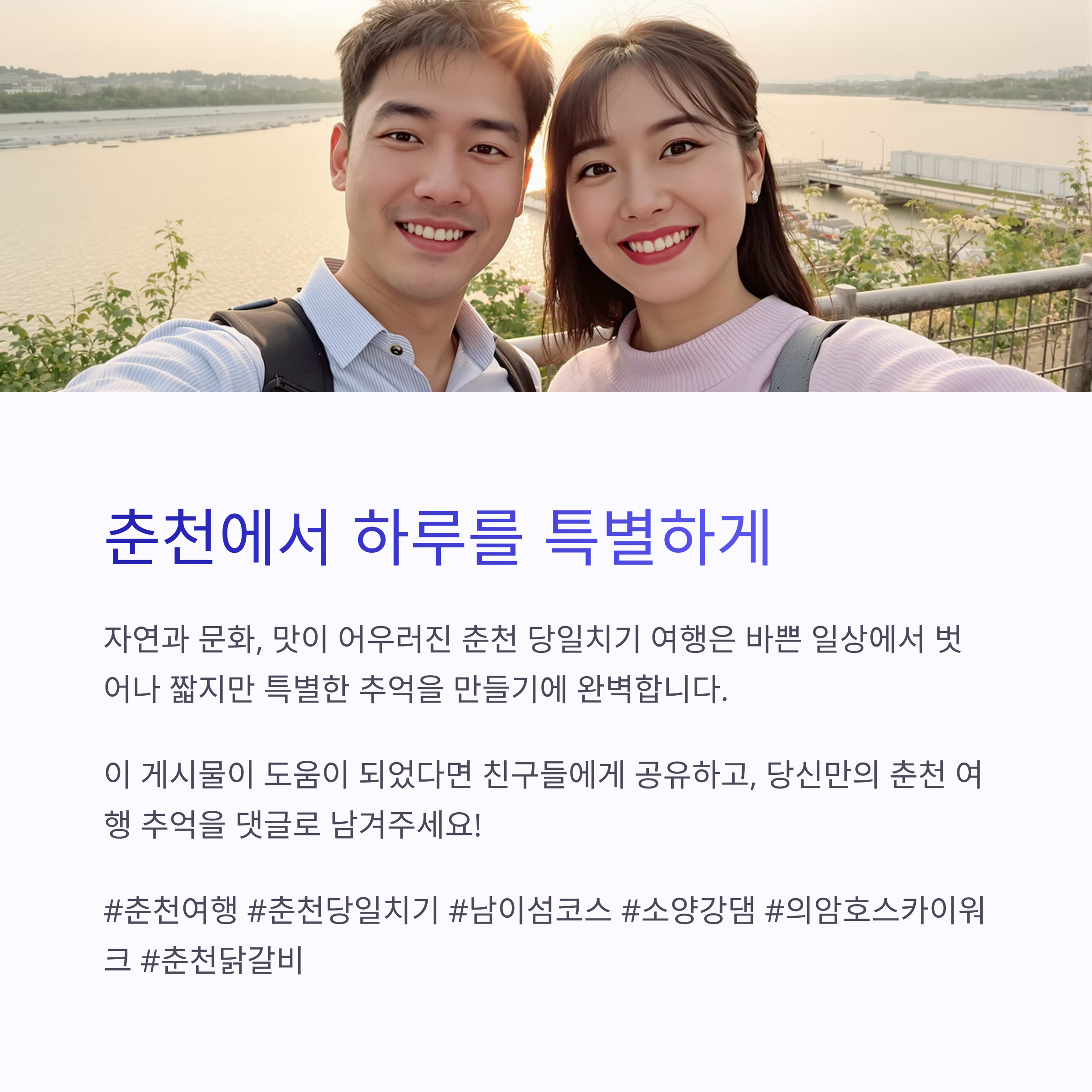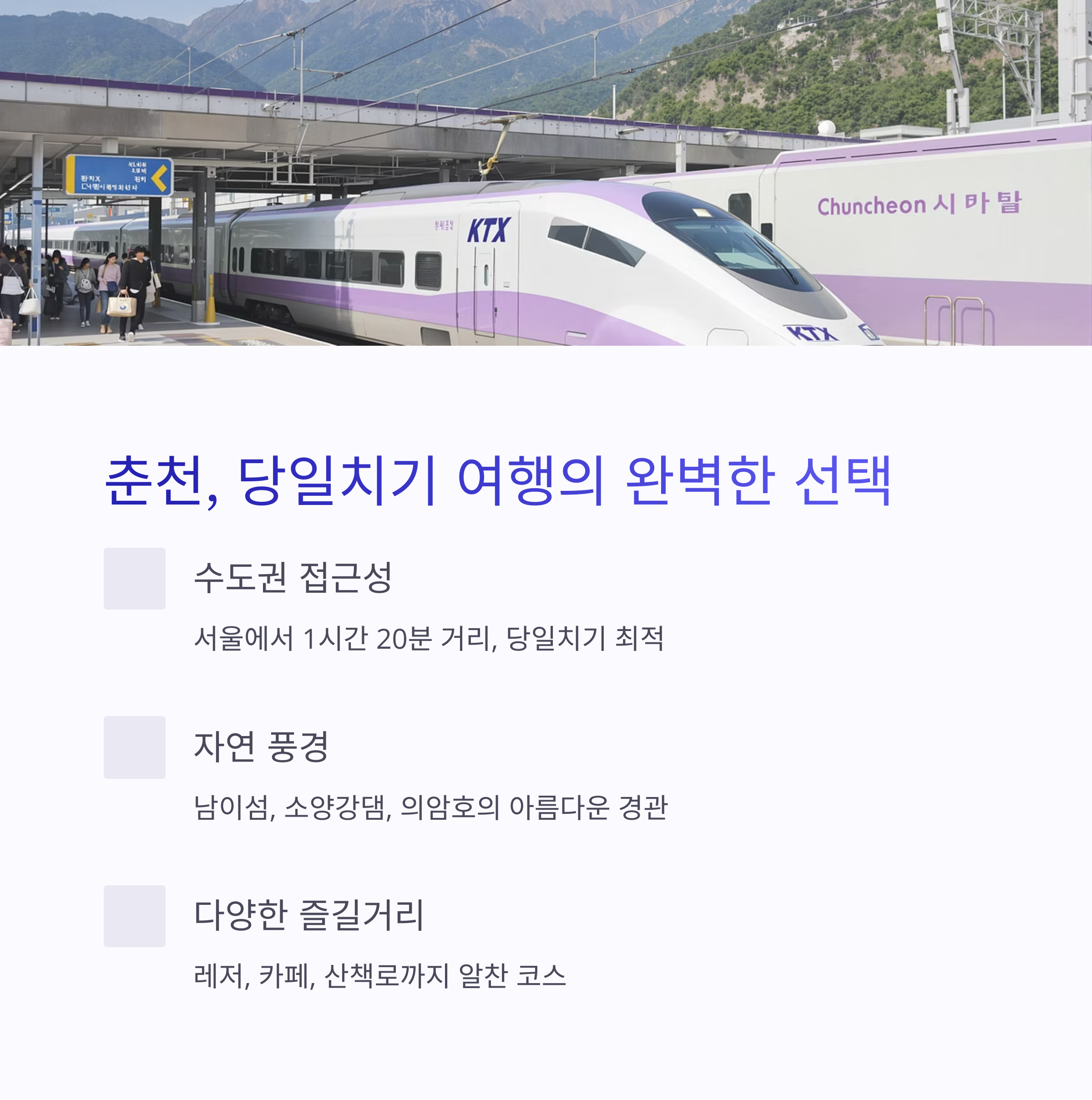 이 글에서는 춘천을 하루 만에 알차게 둘러볼 수 있는 핵심 여행코스를