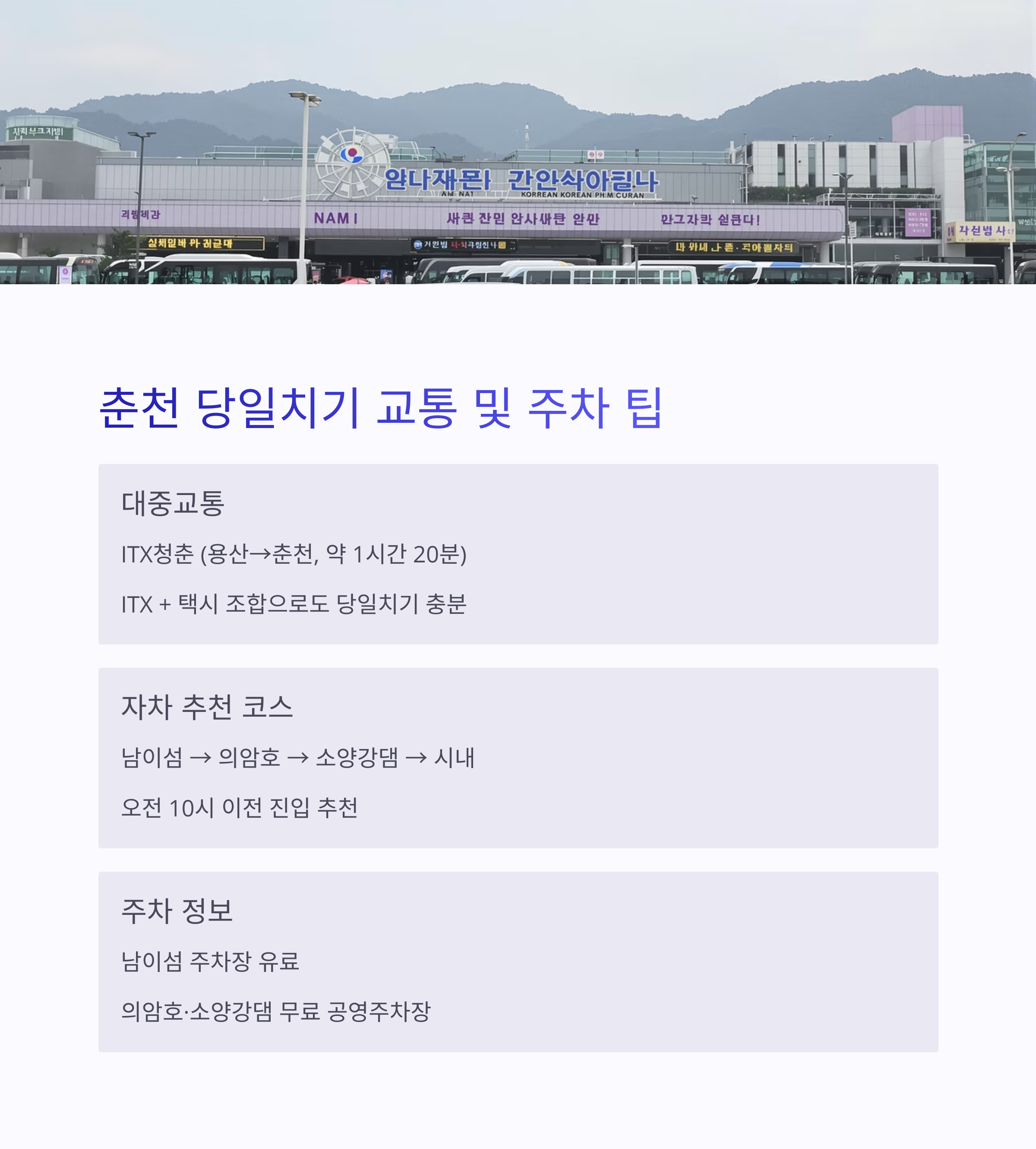 춘천 당일치기 교통 및 주차 팁