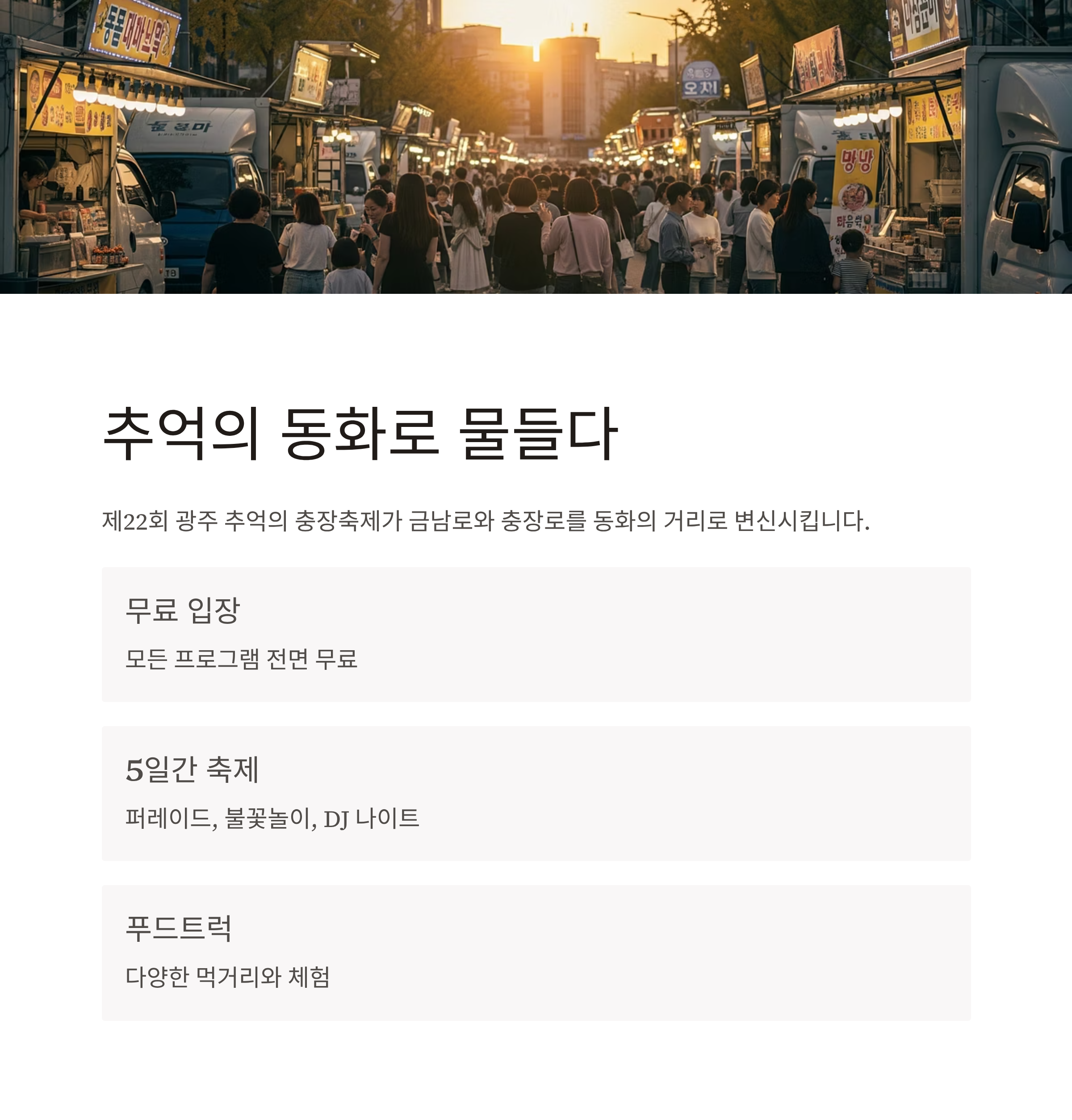 | 행사명 | 제22회 광주 추억의 충장축제 (Chungjang Street Festival of Recollection) |