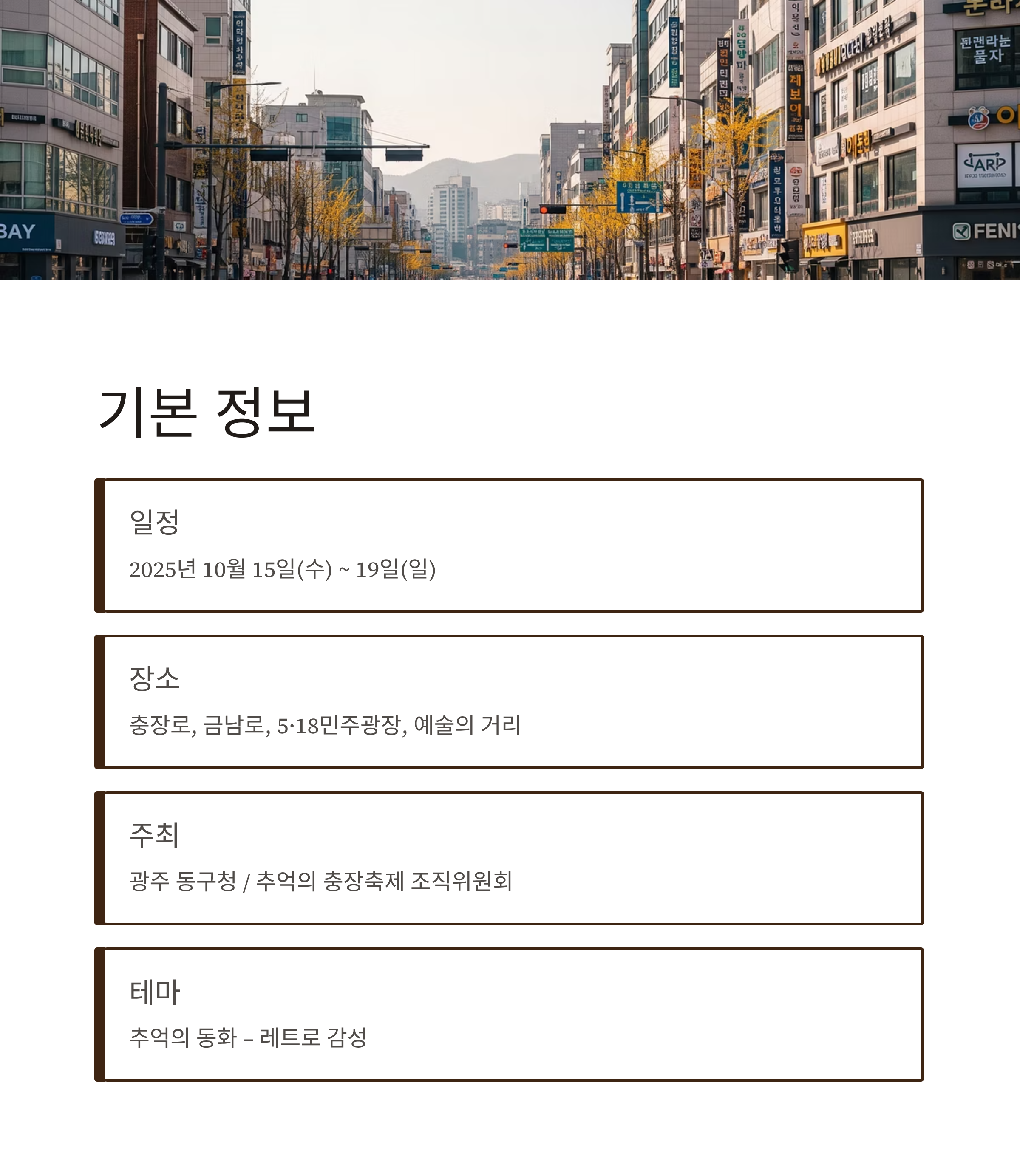 | 주최 / 주관 | 광주 동구청 / 추억의 충장축제 조직위원회 |