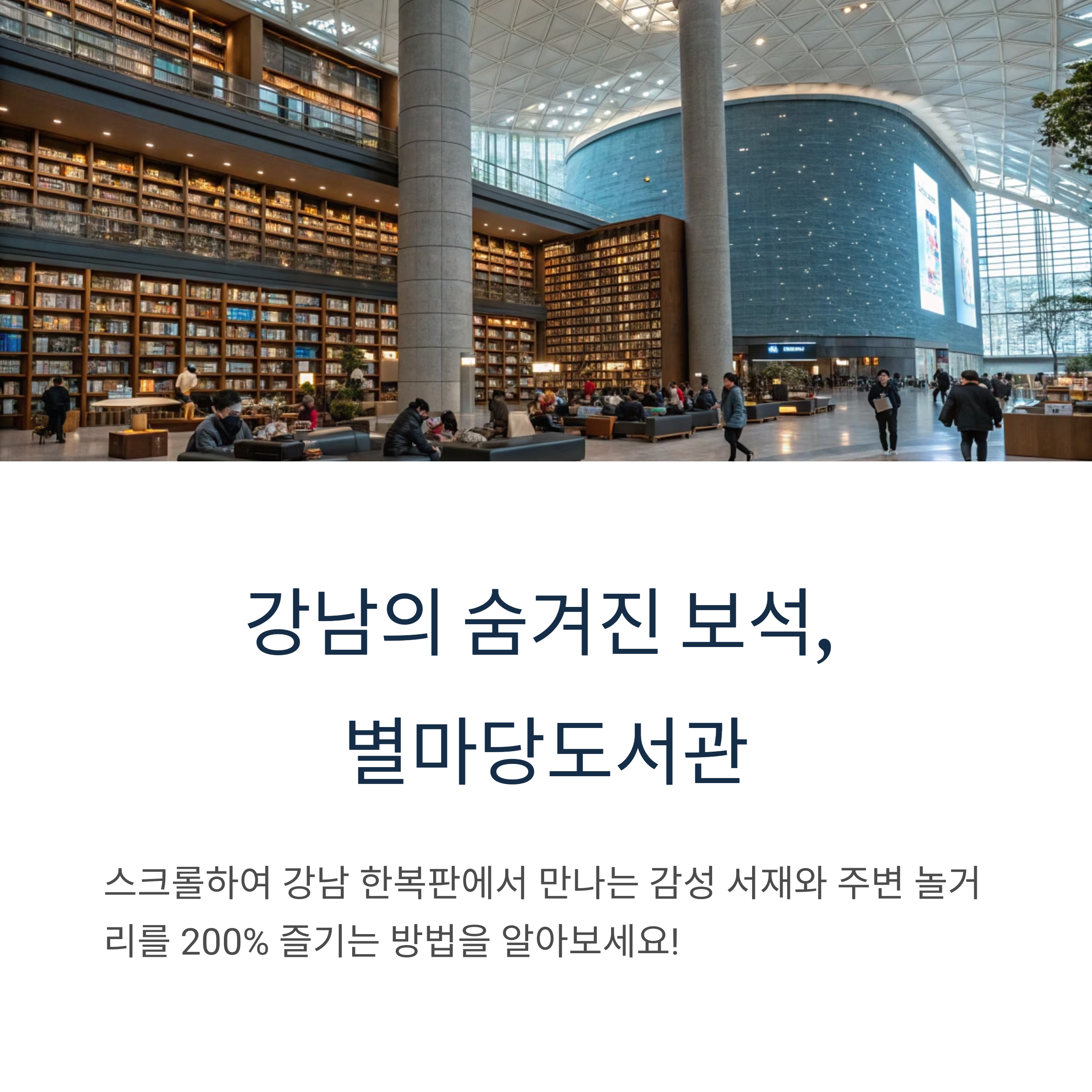 이번 글에서는 별마당도서관의 정확한 위치와 주변 강남에서 함께 즐기기 좋은 놀거리들을 정리해드립니다.