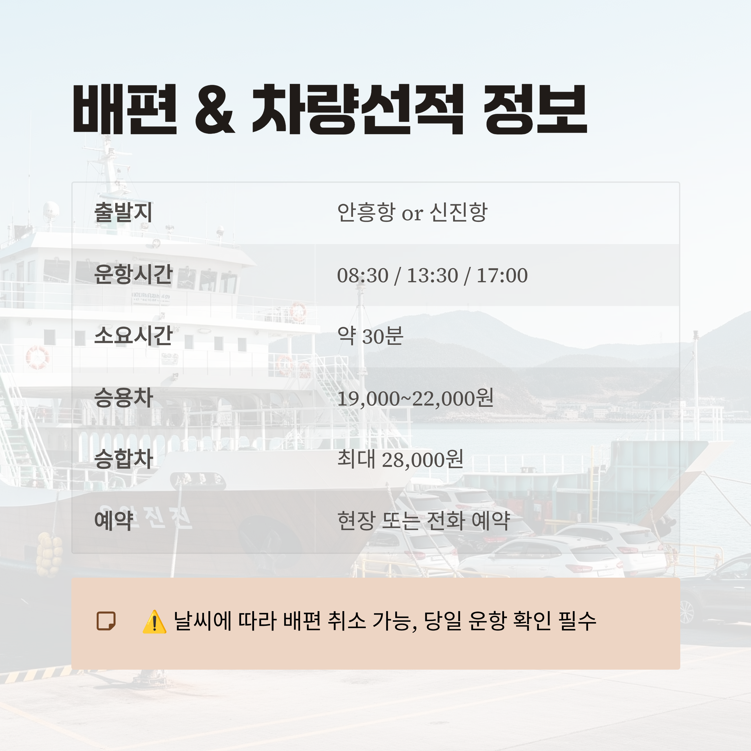 배편 & 차량선착 정보까지 한눈에 보기