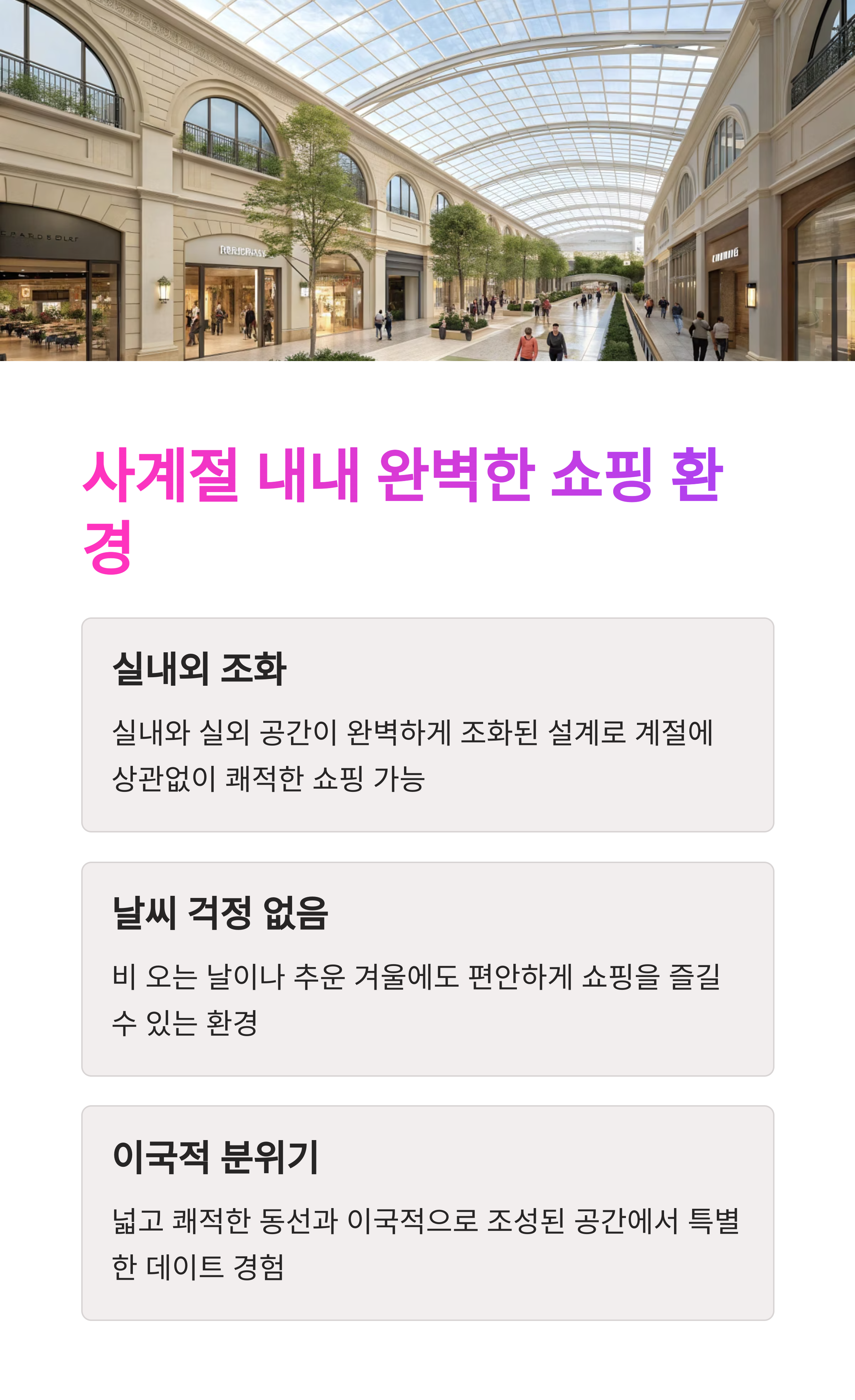셋째, 실내 데이트에 최적화된 아울렛에서 다양한 쇼핑 혜택도 꼭 확인해 보세요!