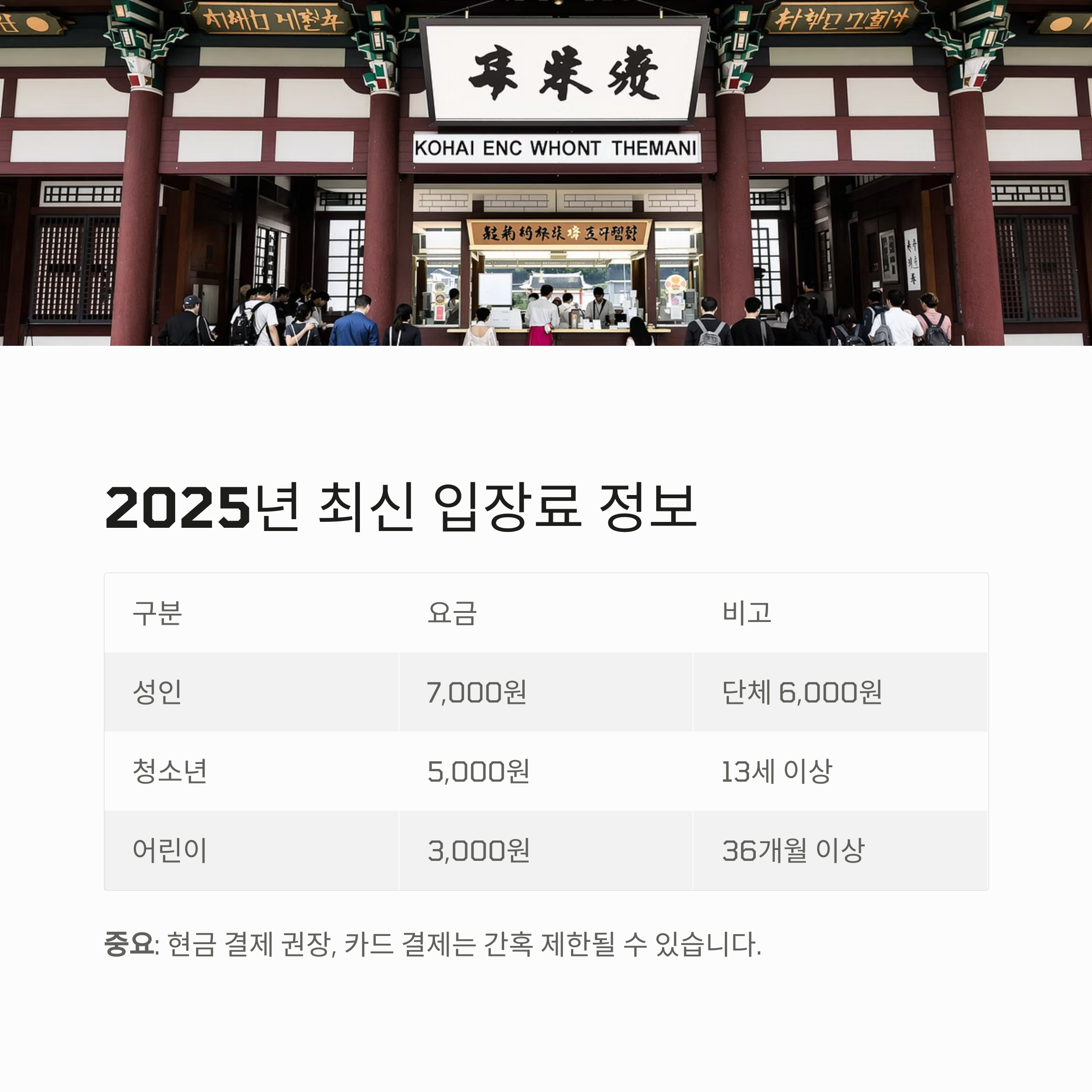 중요: 현금 결제 권장, 카드 결제는 간혹 제한될 수 있습니다.