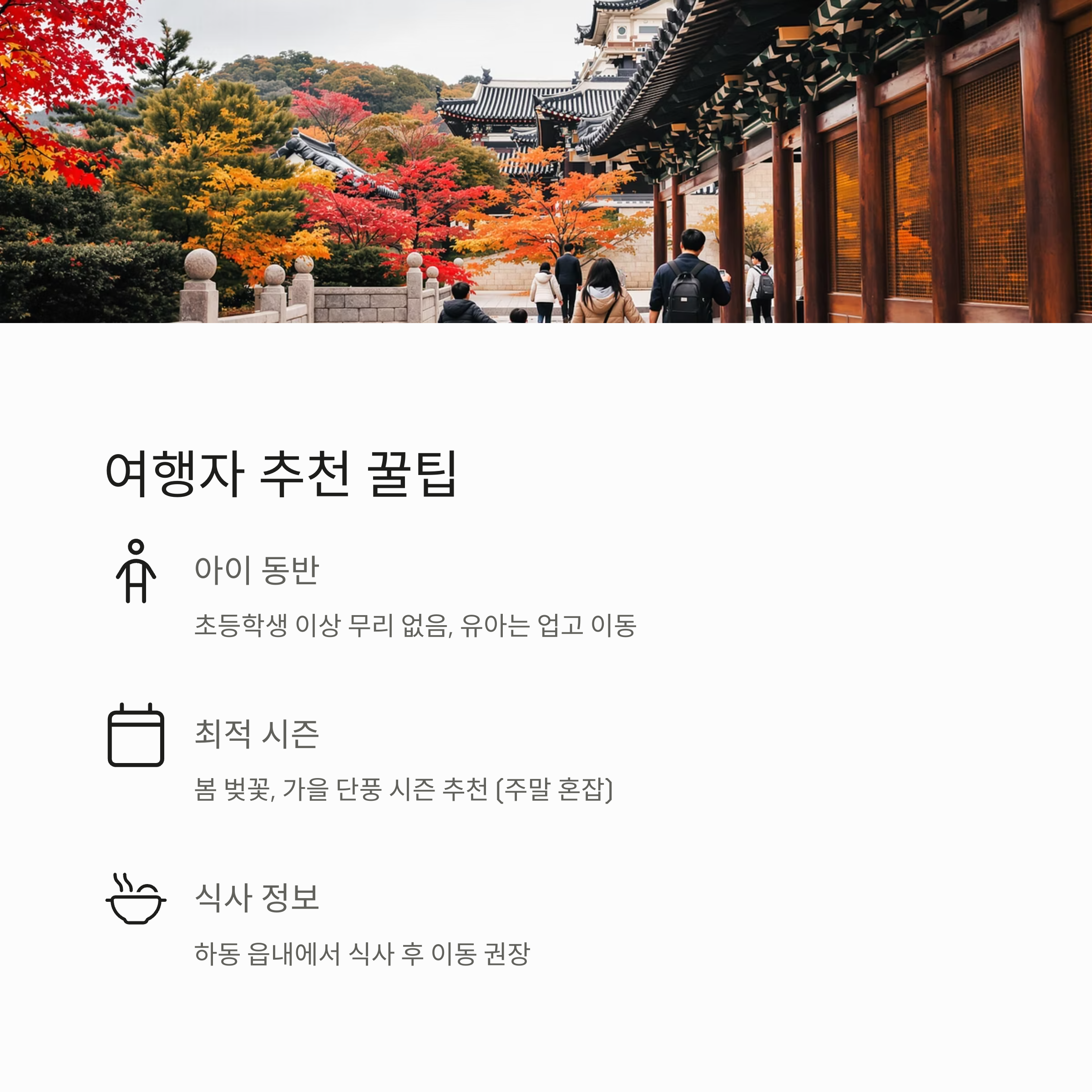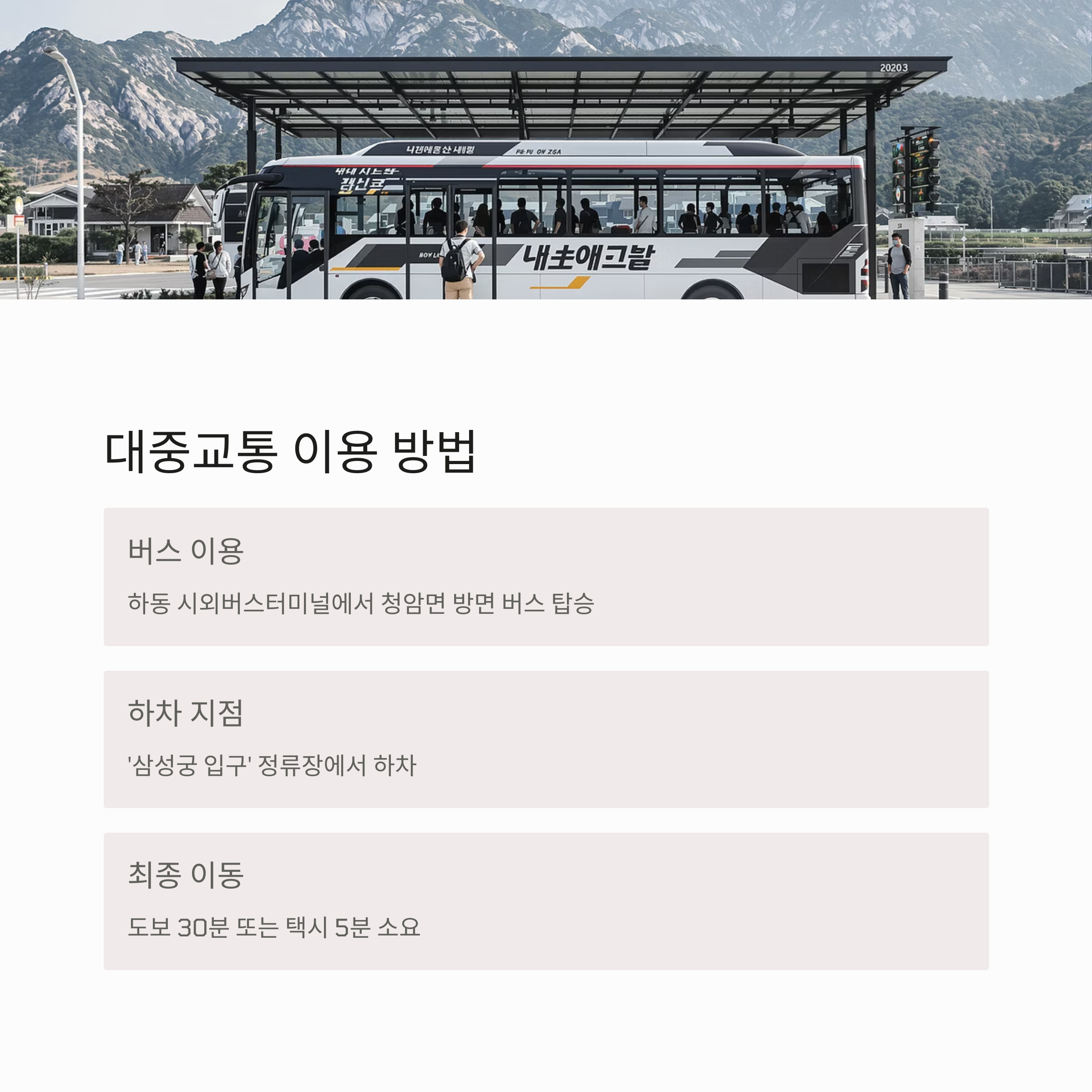 자차, 대중교통 모두 이용 가능하며, 계절별 방문 팁도 함께 알려드립니다.