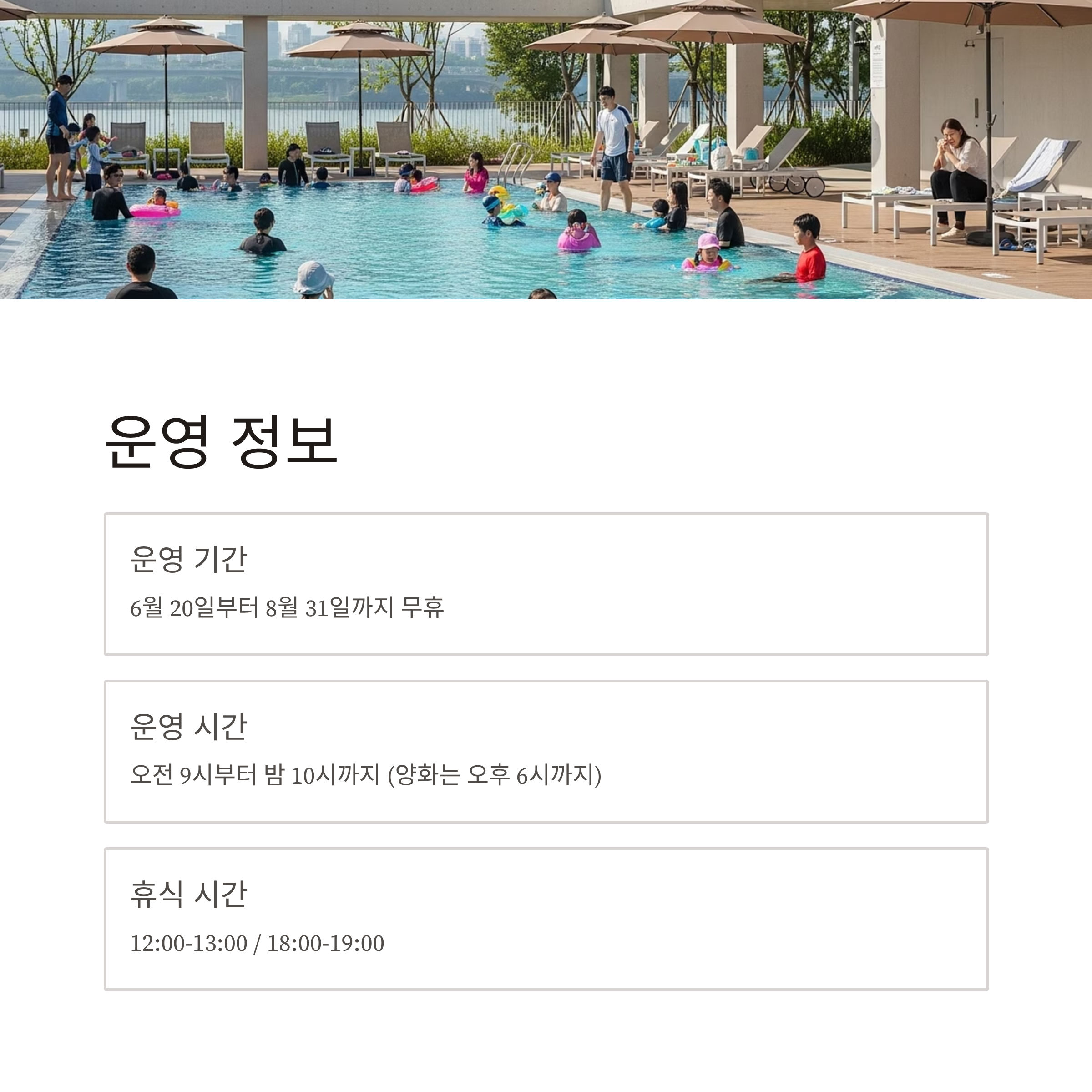수영장 내 이용 시 주의할 점도 꼭 확인하세요.