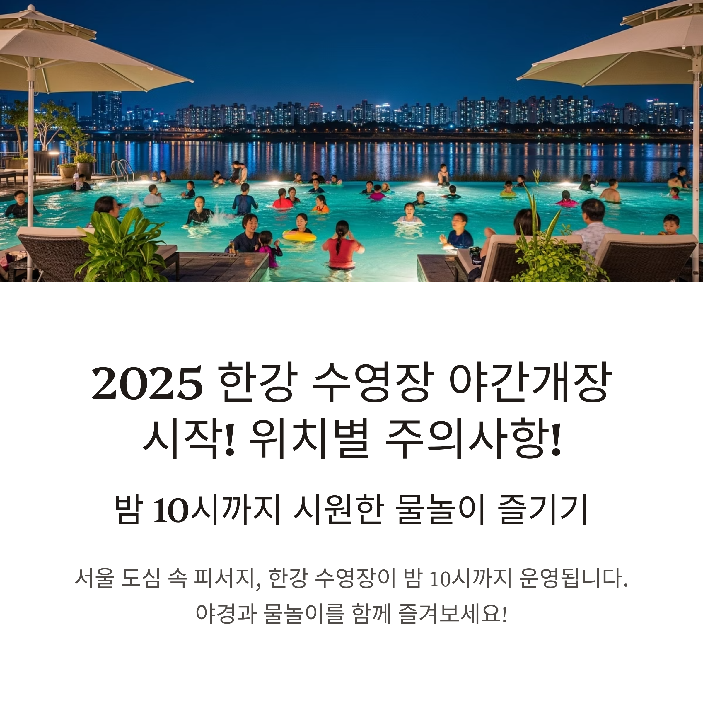 2025 한강 수영장 야간개장 시작! 밤 10시까지 시원한 물놀이 즐기기