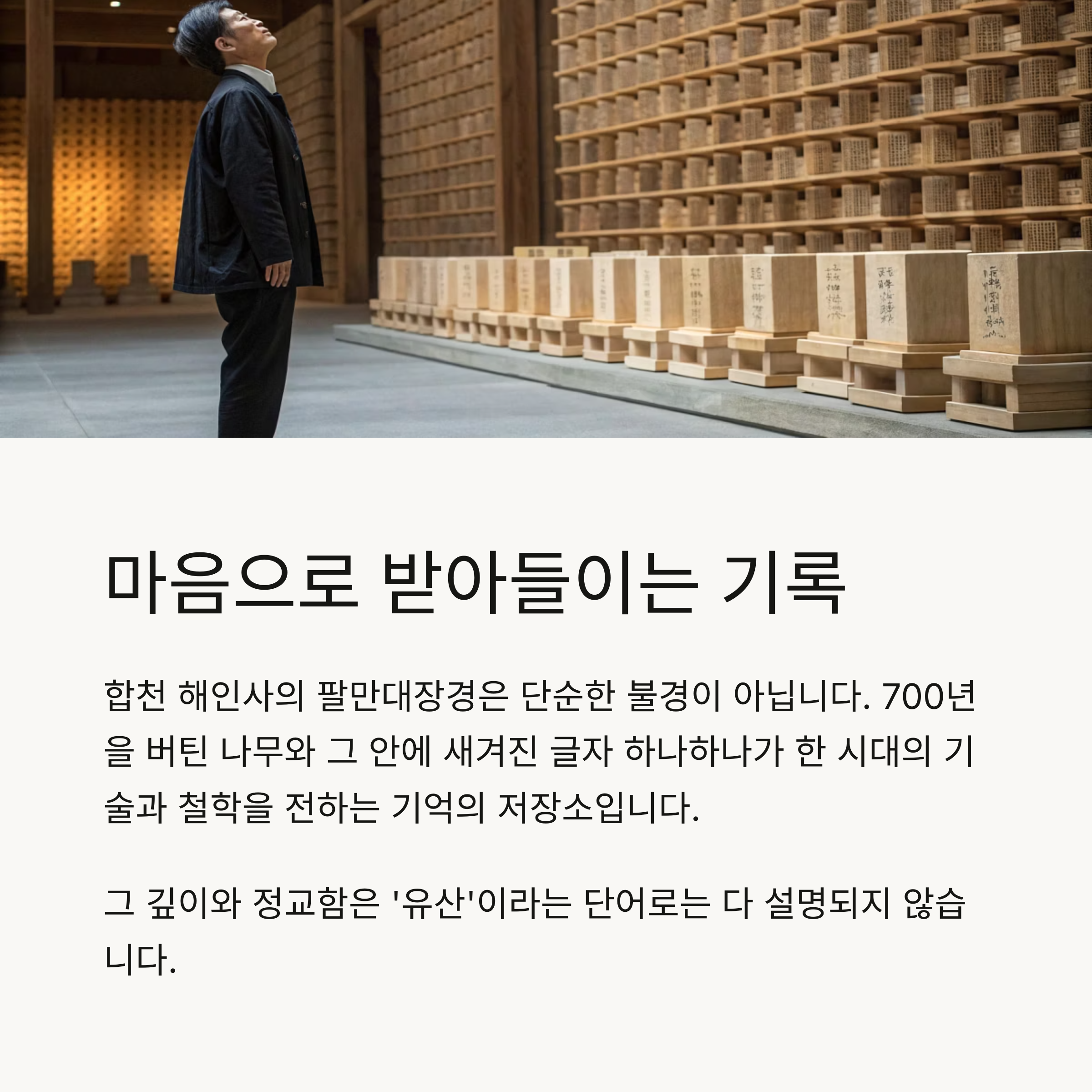 🎯 결론 – 팔만대장경은 눈으로 보는 유산이 아닌 ‘마음으로 받아들이는 기록’