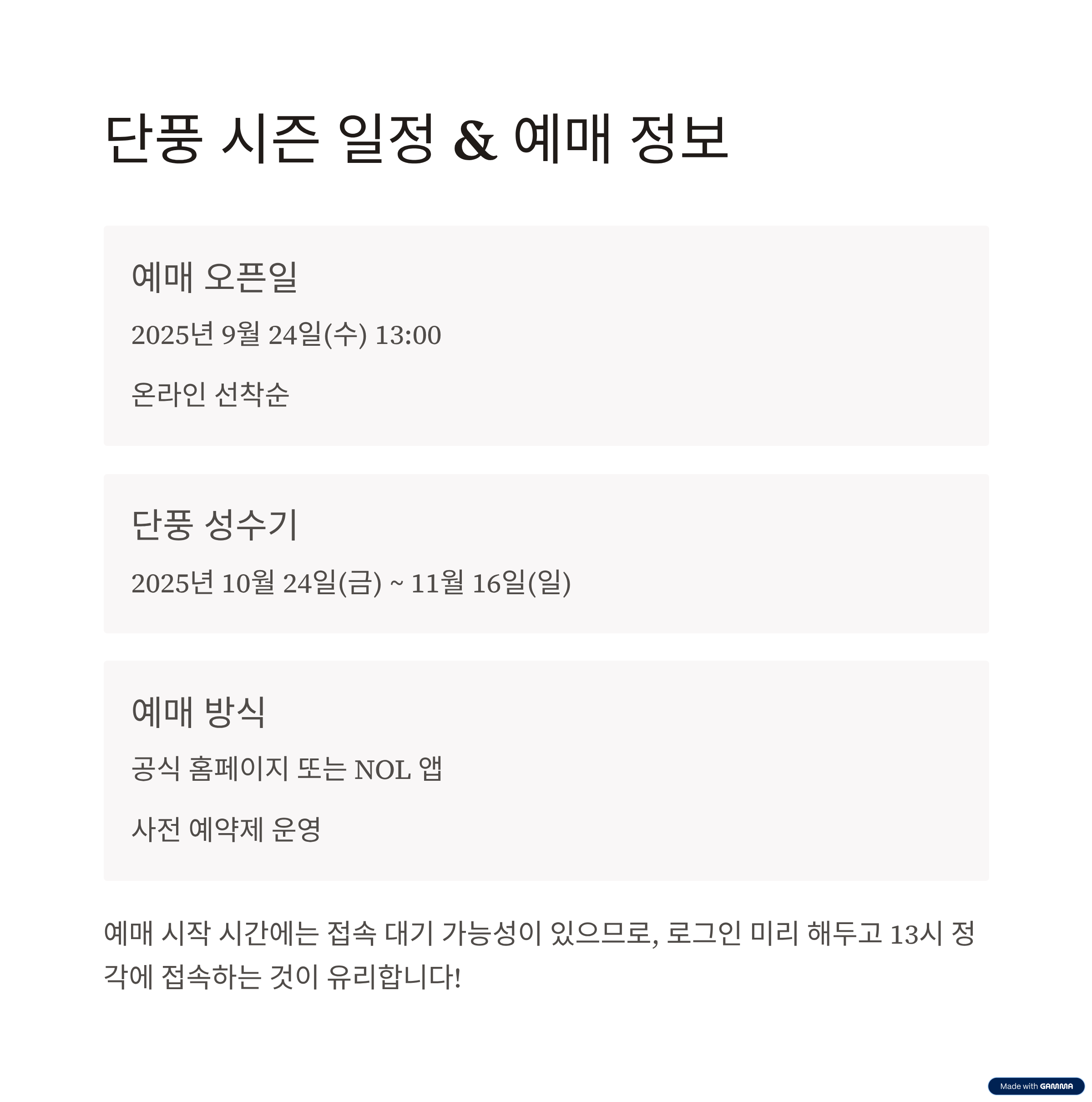1. 단풍 시즌 일정 & 예매 오픈일