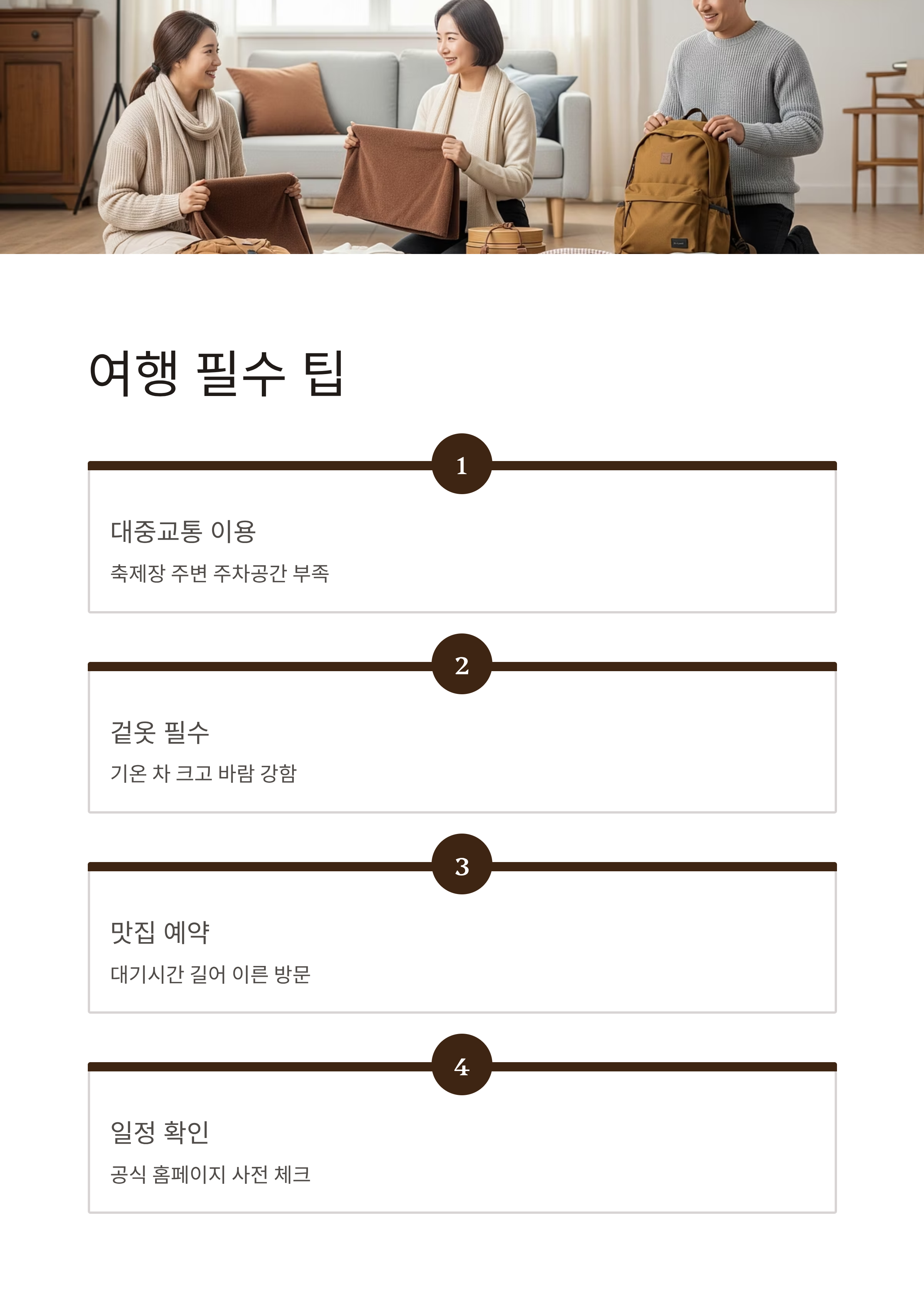 - 축제 프로그램은 날씨나 사정에 따라 변경될 수 있으니 방문 전 공식 홈페이지나 SNS를 꼭 확인하세요.