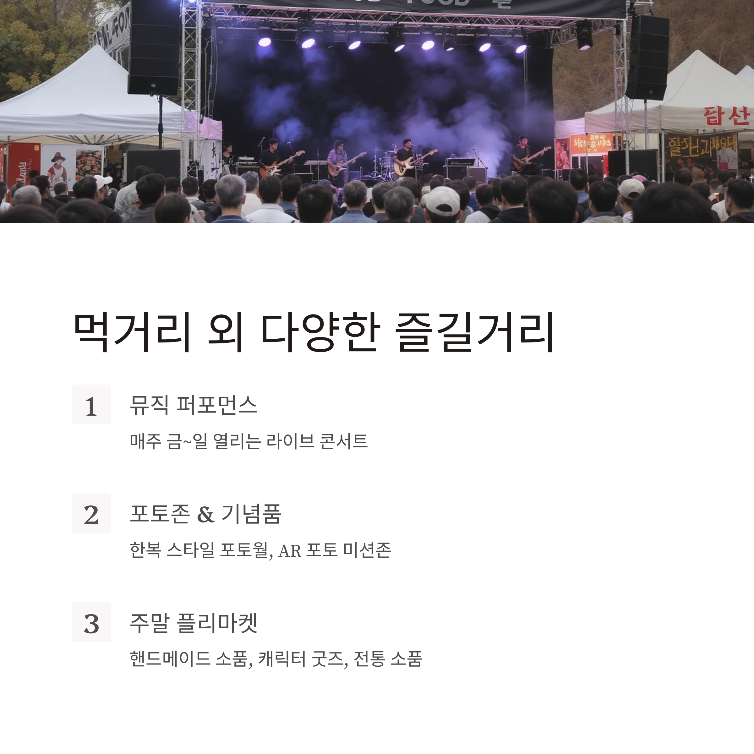 볼거리와 즐길 거리, 공연·포토존·플리마켓까지!