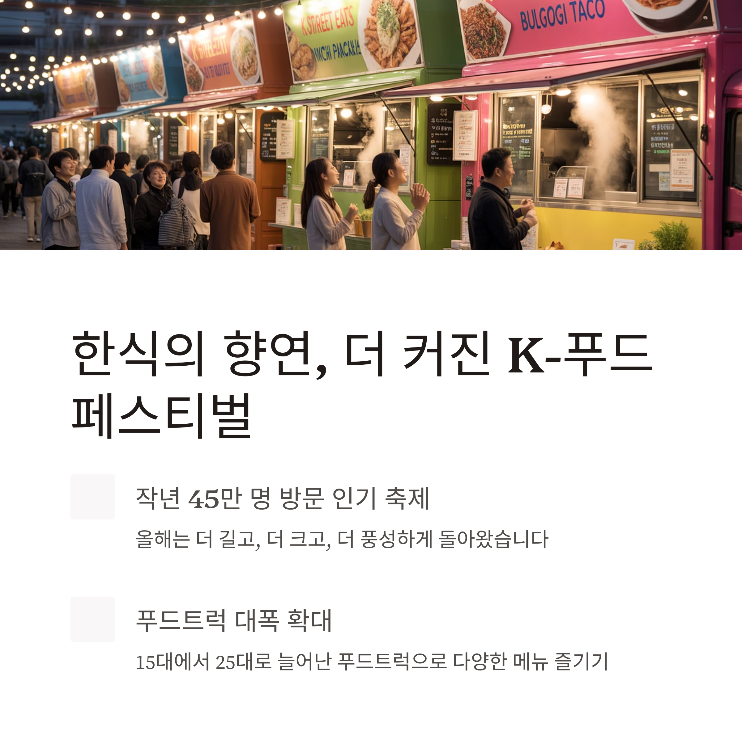 K 푸드 페스티벌 넉넉 푸드트럭 수가 15→25개! 풍성해진 메뉴 한눈에 보기